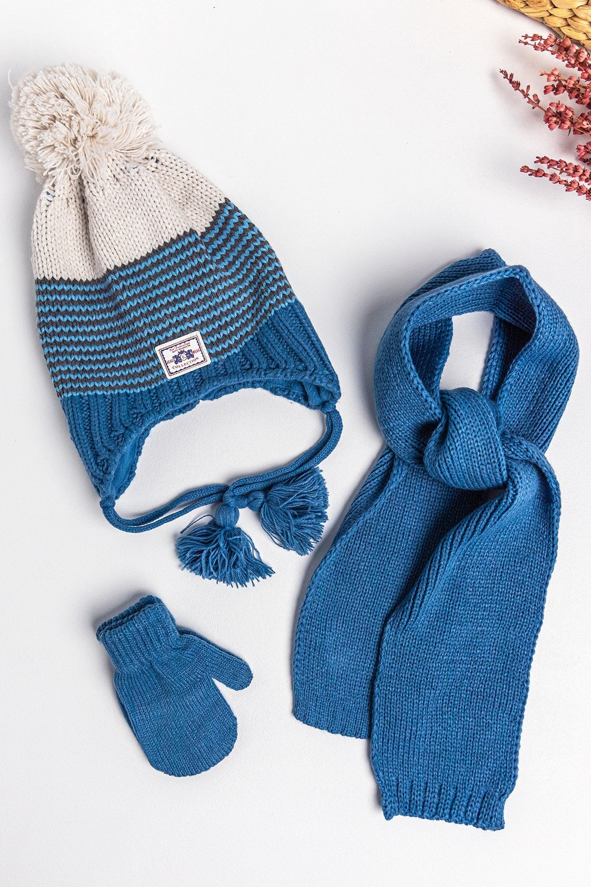 1-4 Yaş Erkek Çocuk Üçlü Atkı Bere Eldiven Takımı MAVİ - 1-4 Yaş