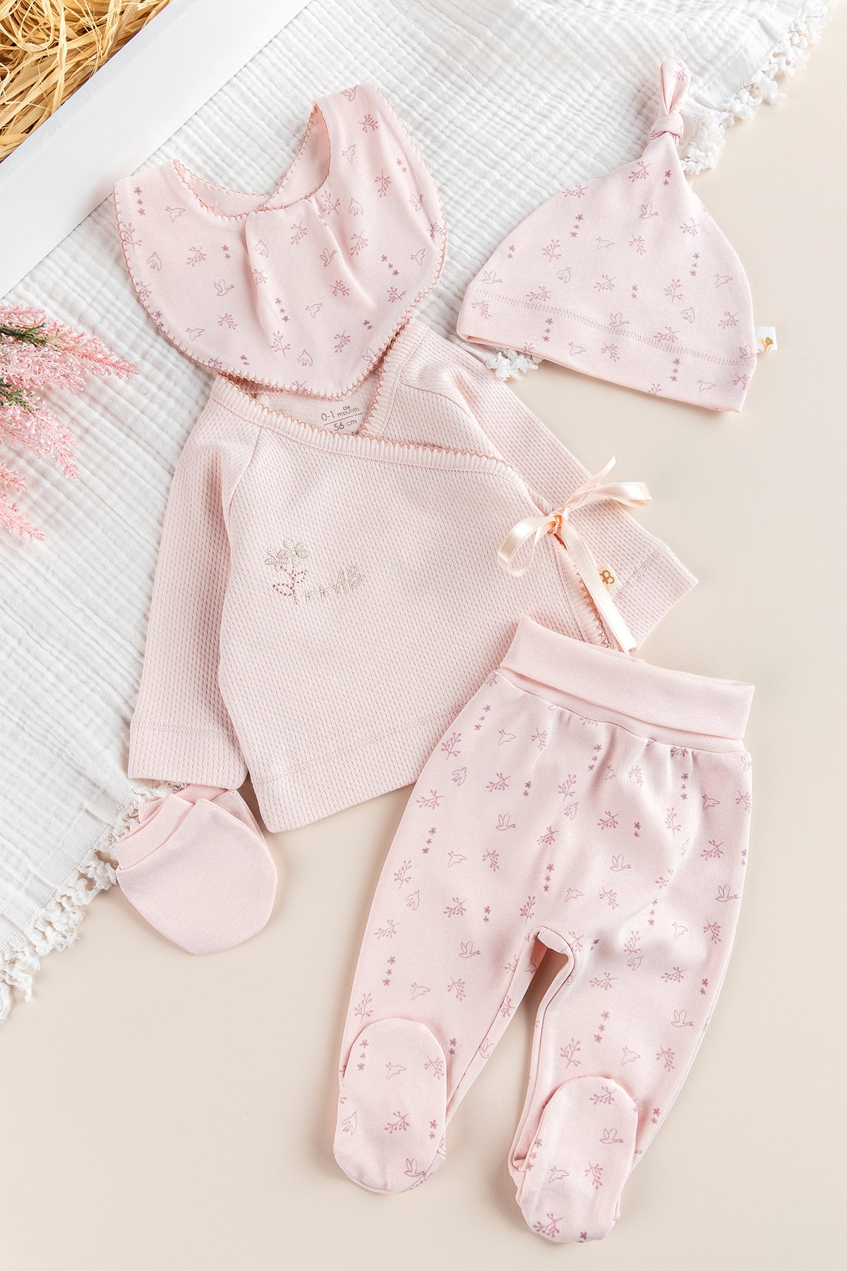 %100 pamuklu Çiçek Desenli 5 Parca Kız Bebek Hastane Çıkışı Bebek Takımı SOMON - Yeni Doğan