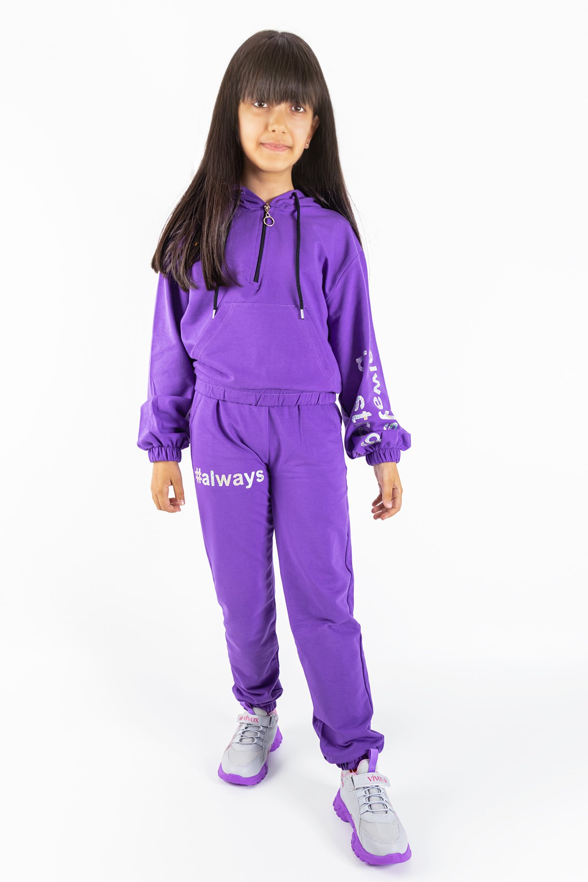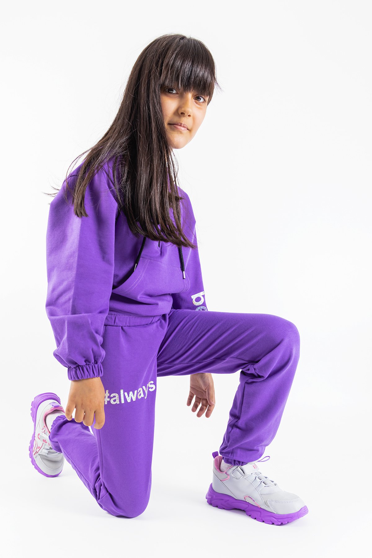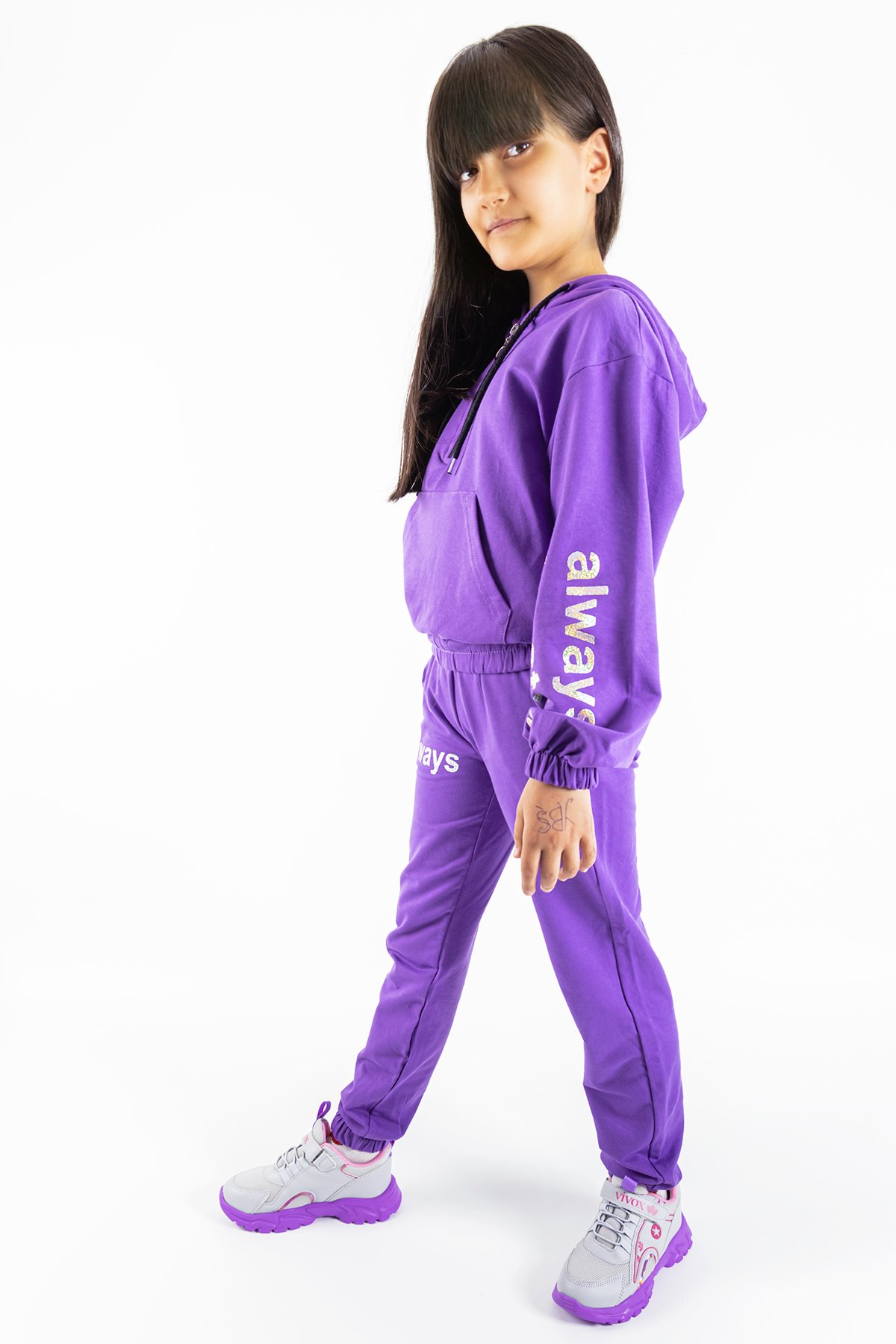 Always Baskılı Kapüşonlu Kız Çocuk Eşofman Takımı