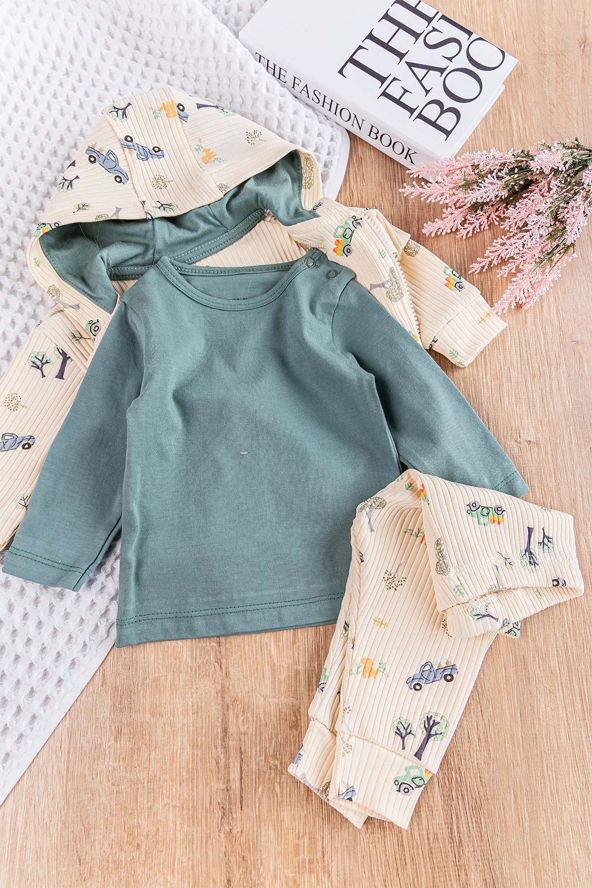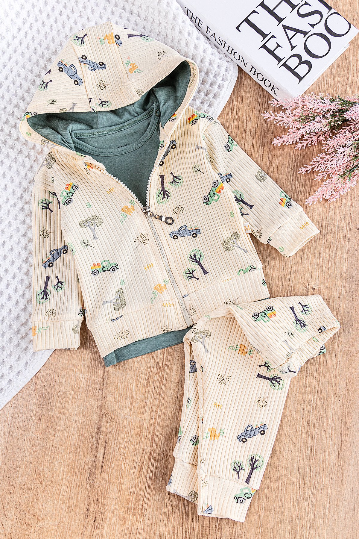 Babymod 3-Piece Baby Boy Set with Car Figure Hooded Cardigan