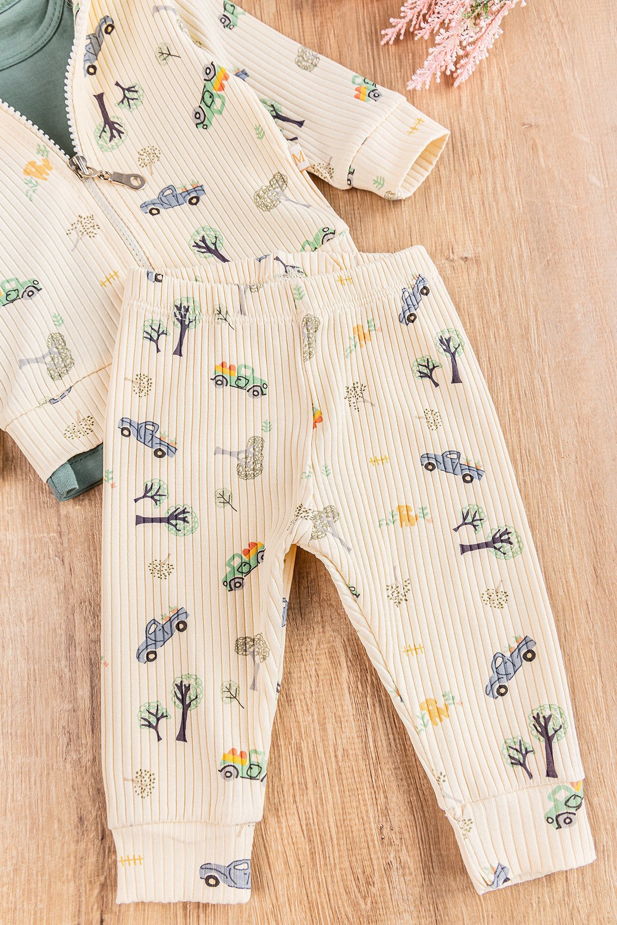 Araba Figürlü Kapüşonlu Hırkalı 3'lü Erkek Bebek Takım