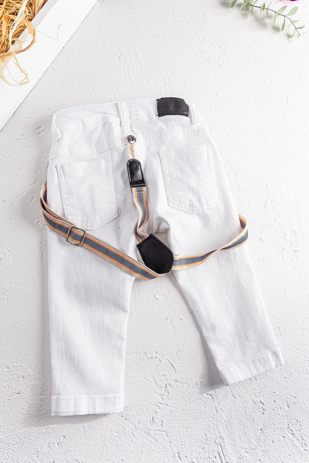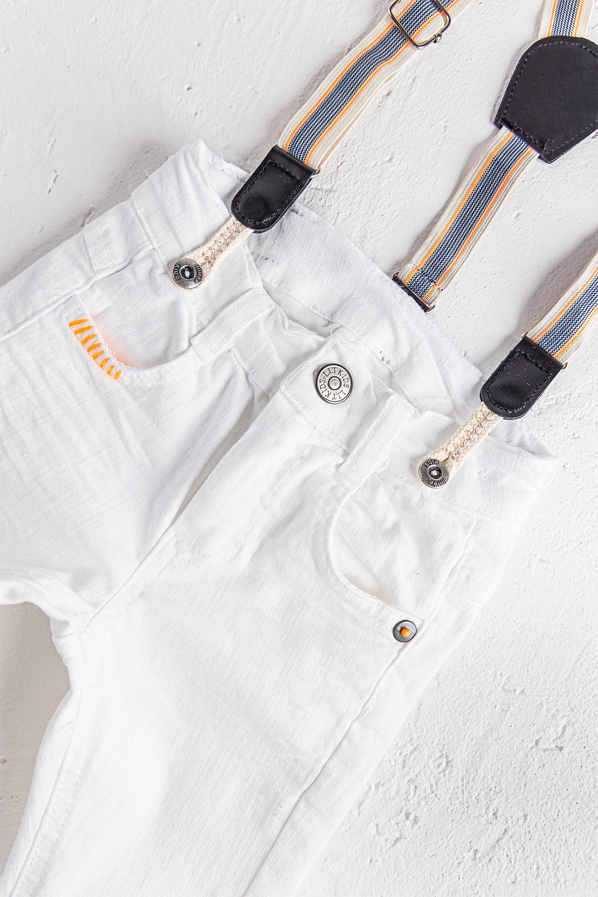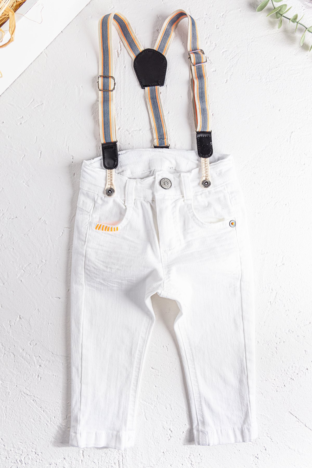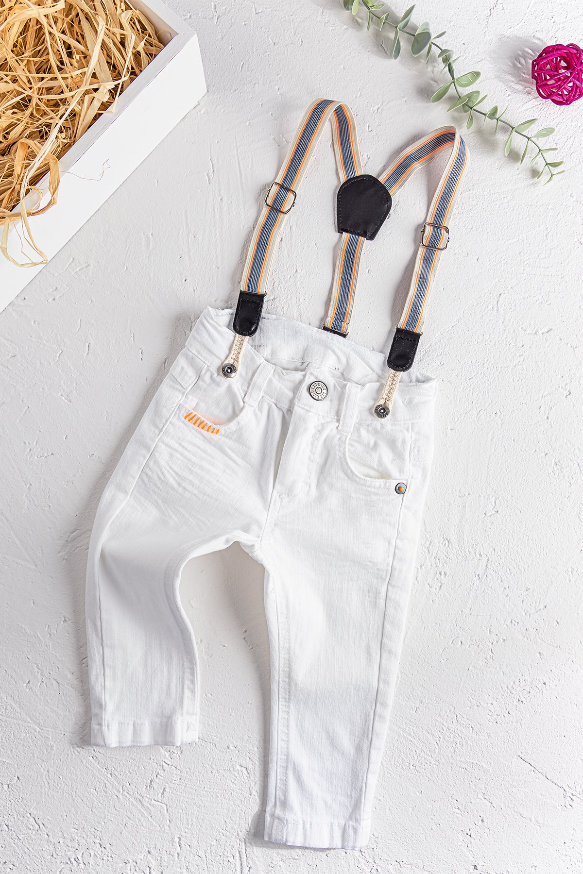 Askılı Beyaz Erkek Bebek Kot Pantolon