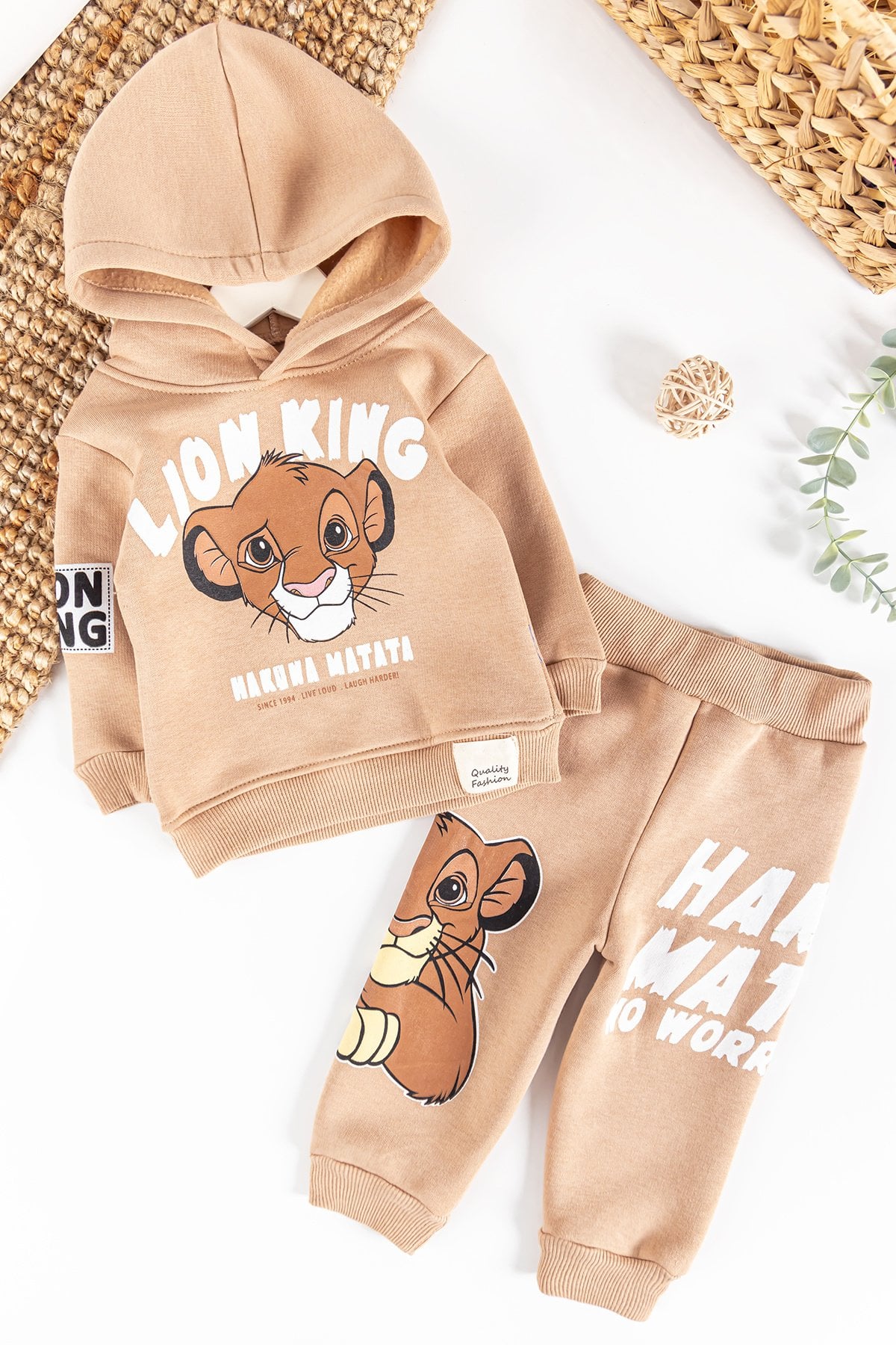 Aslan Figürlü Kapüşonlu İçi Pamuklu Erkek Bebek Takım