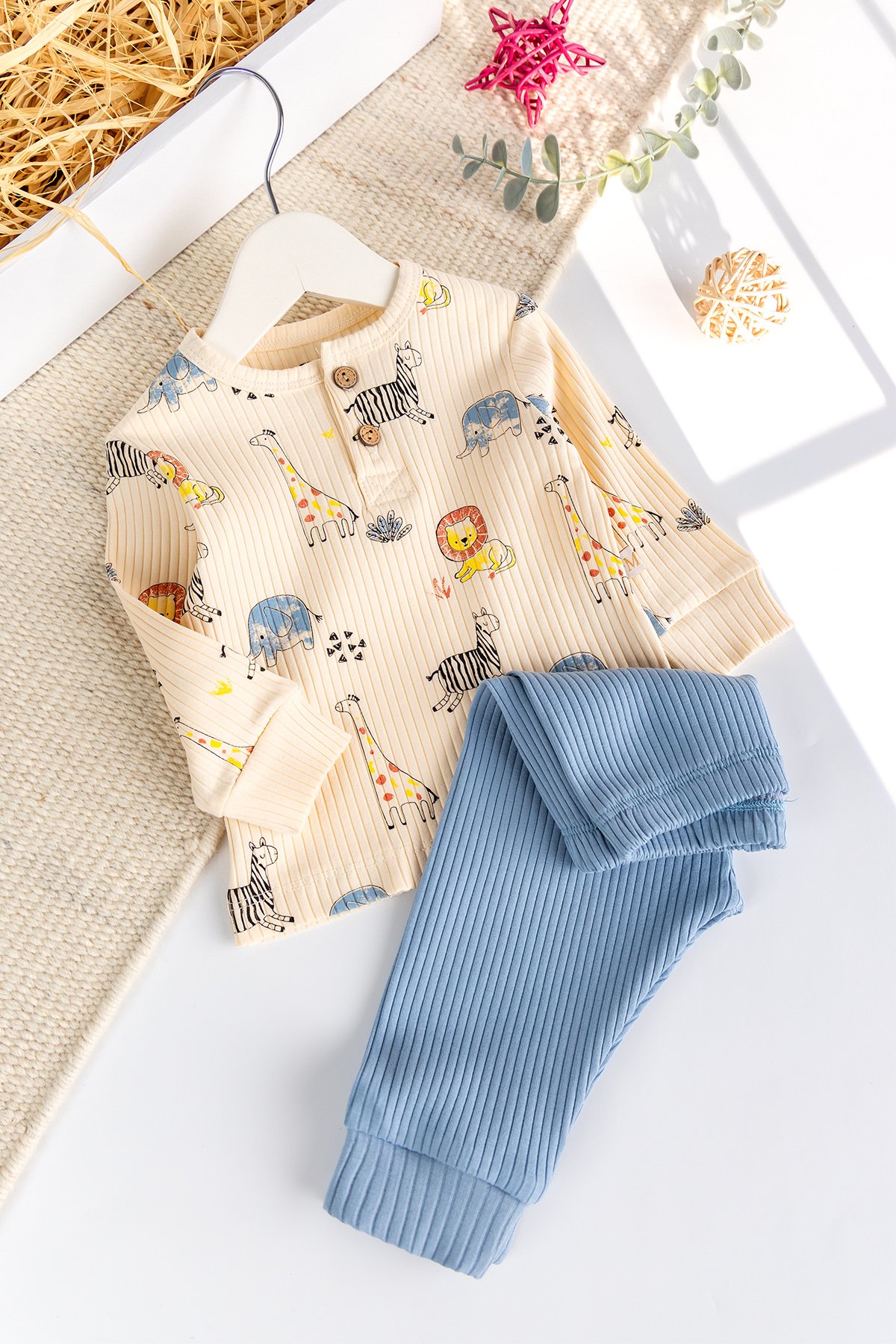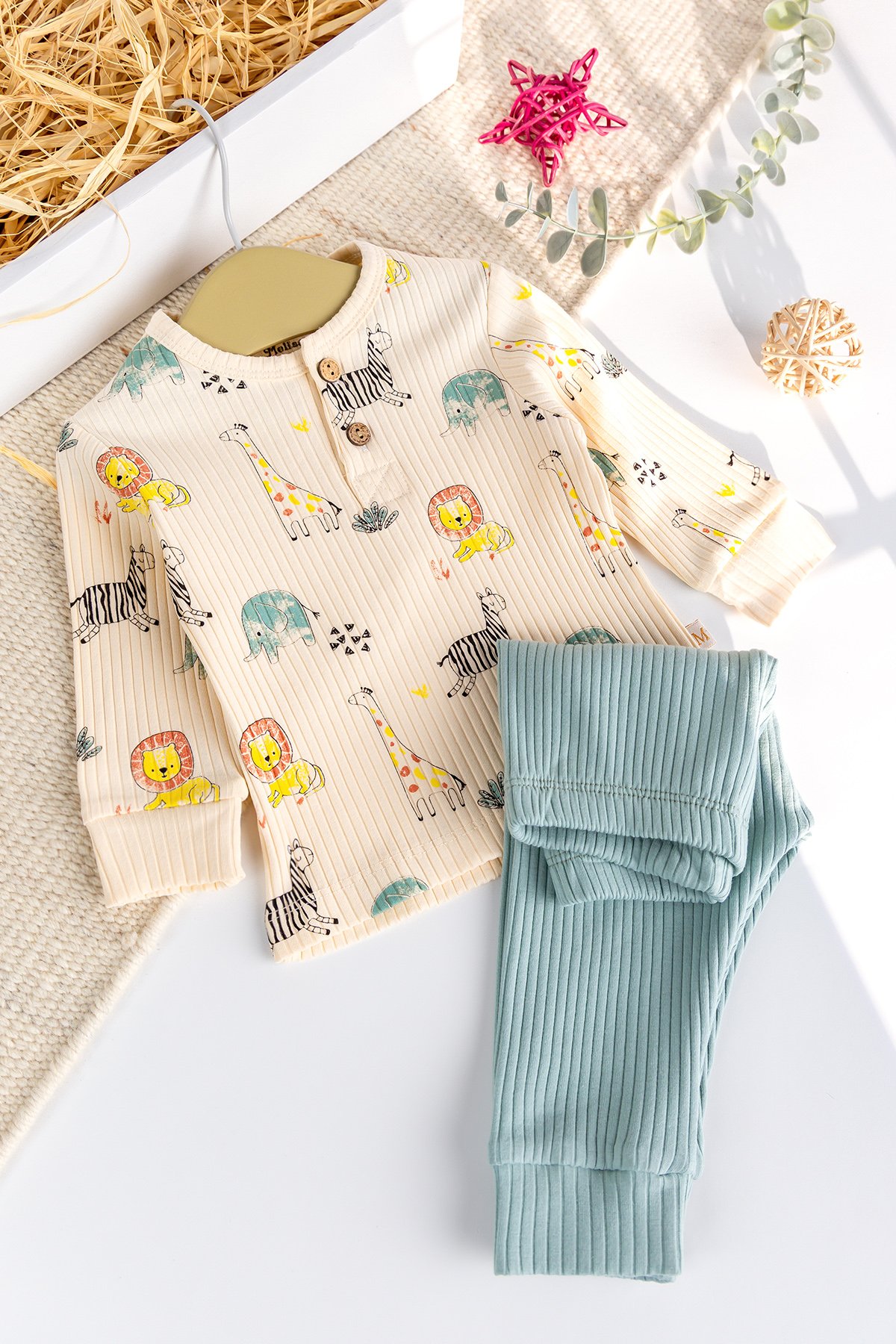 Bebeğinizin doğallığını ve enerjisini yansıtan, hem rahatlığı hem de şirinliği bir araya getiren bu aslan temalı erkek bebek takımı, minik aslanınız için özenle tasarlandı!