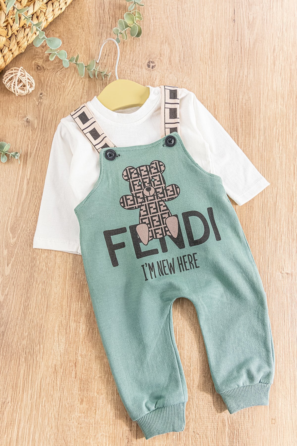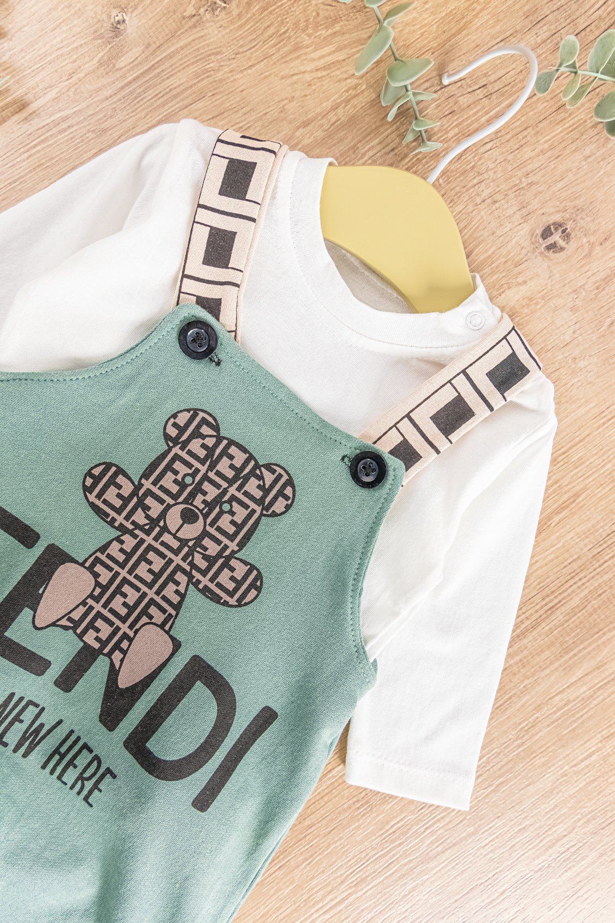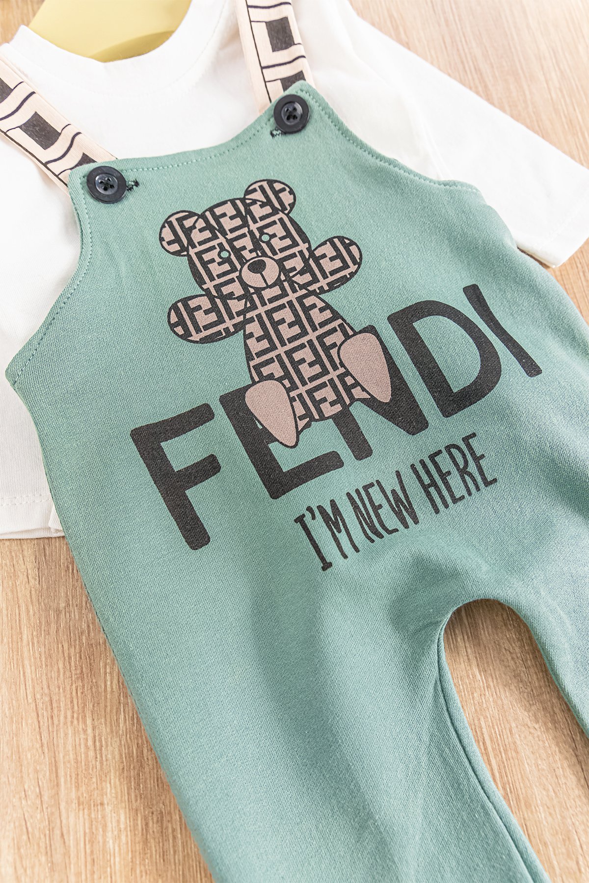 - Salopetin ön kısmı ayıcık desenlidir.