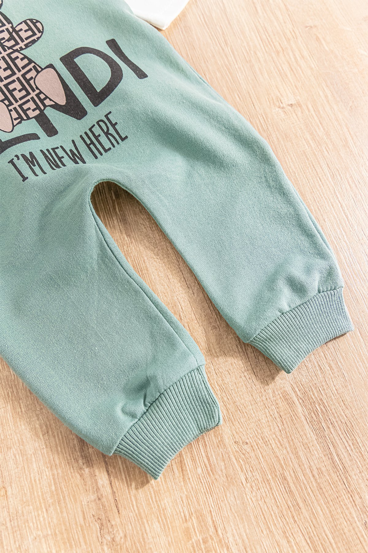 - The ankles of the baby romper have rib cuffs.