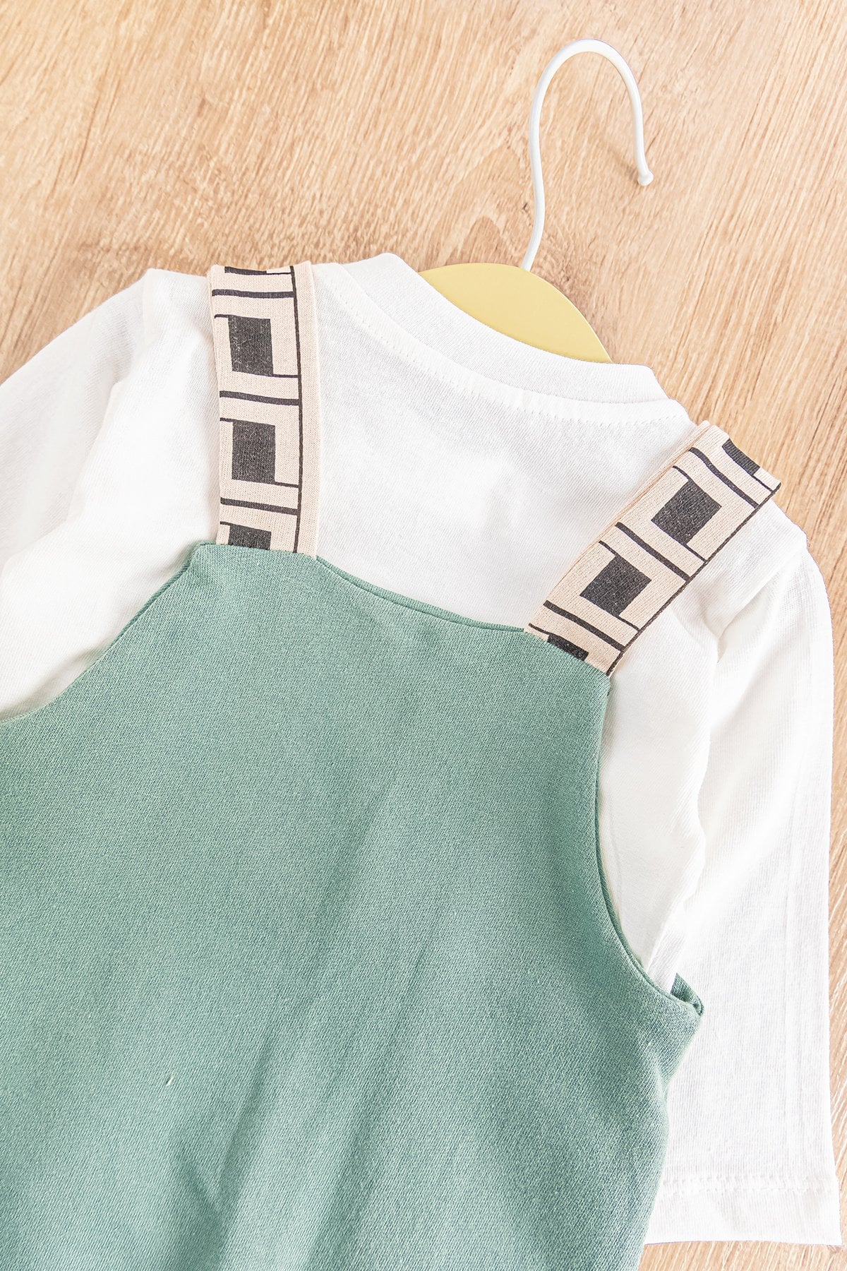 - Bebek salopetin askıları düğmelidir.