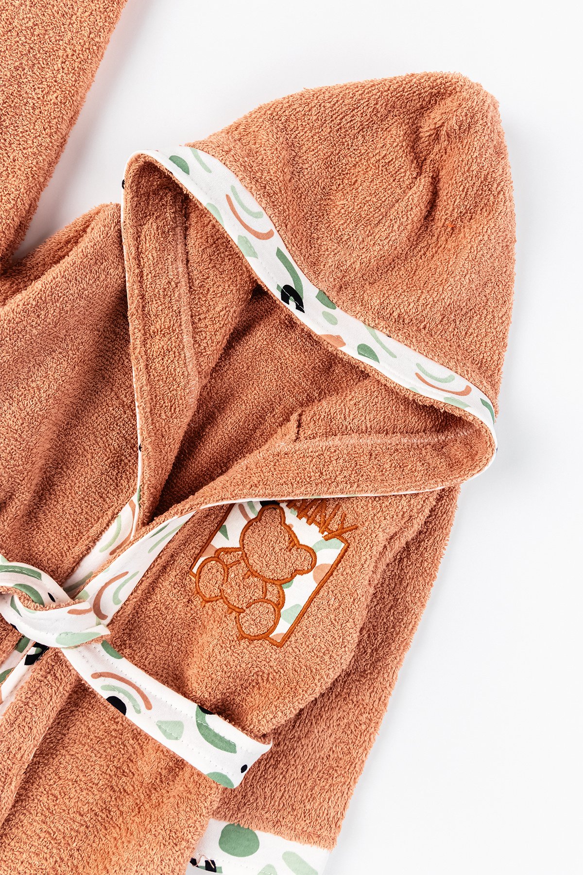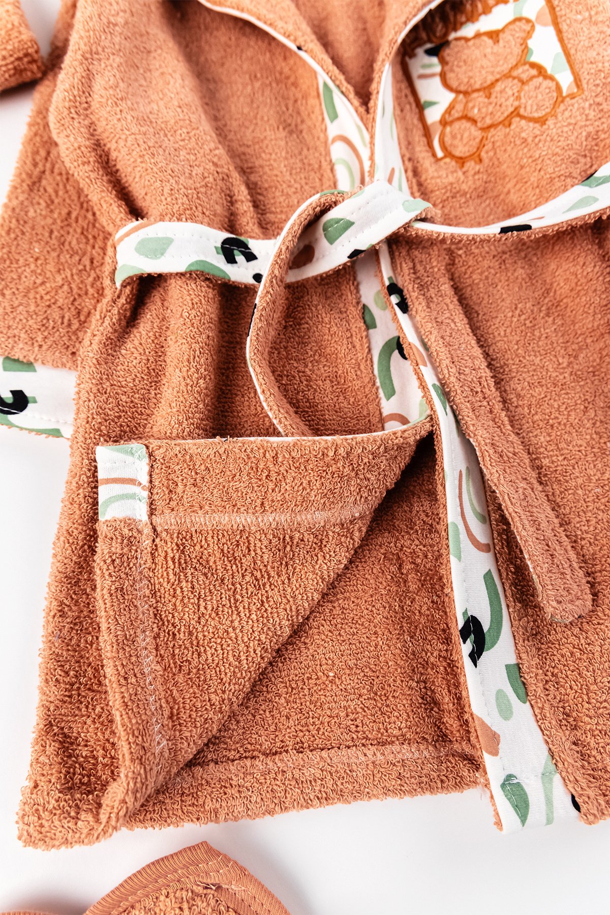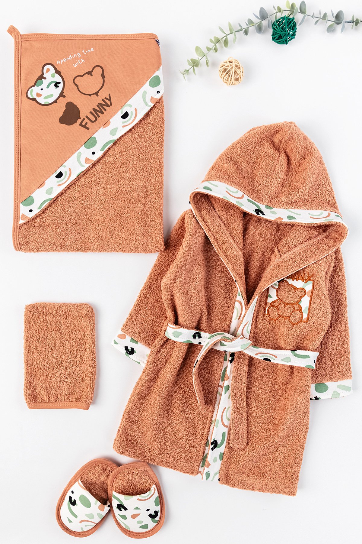 Ayıcık Figürlü 4 Parça Pamuklu Bebek Havlu Bornoz Seti Tarçın - 0-18 Ay
