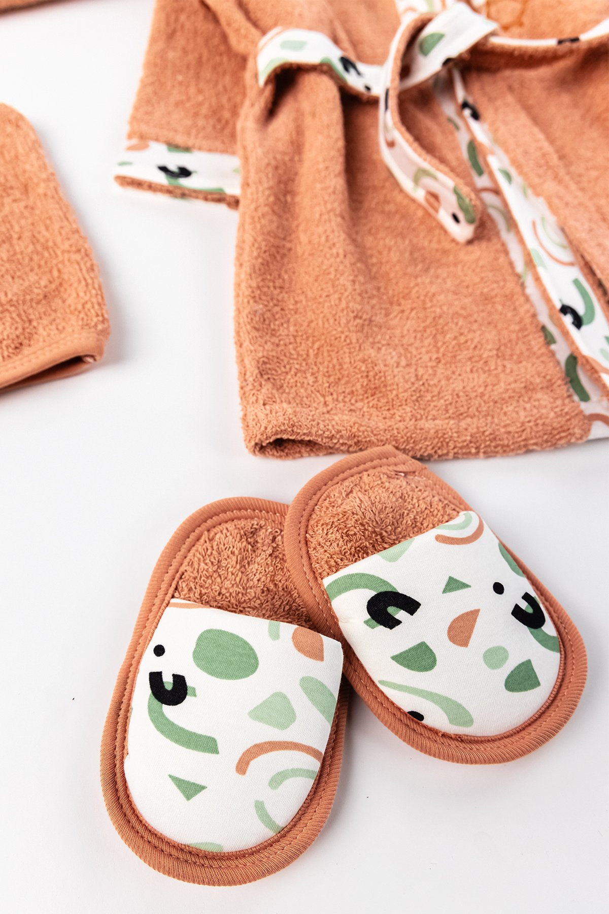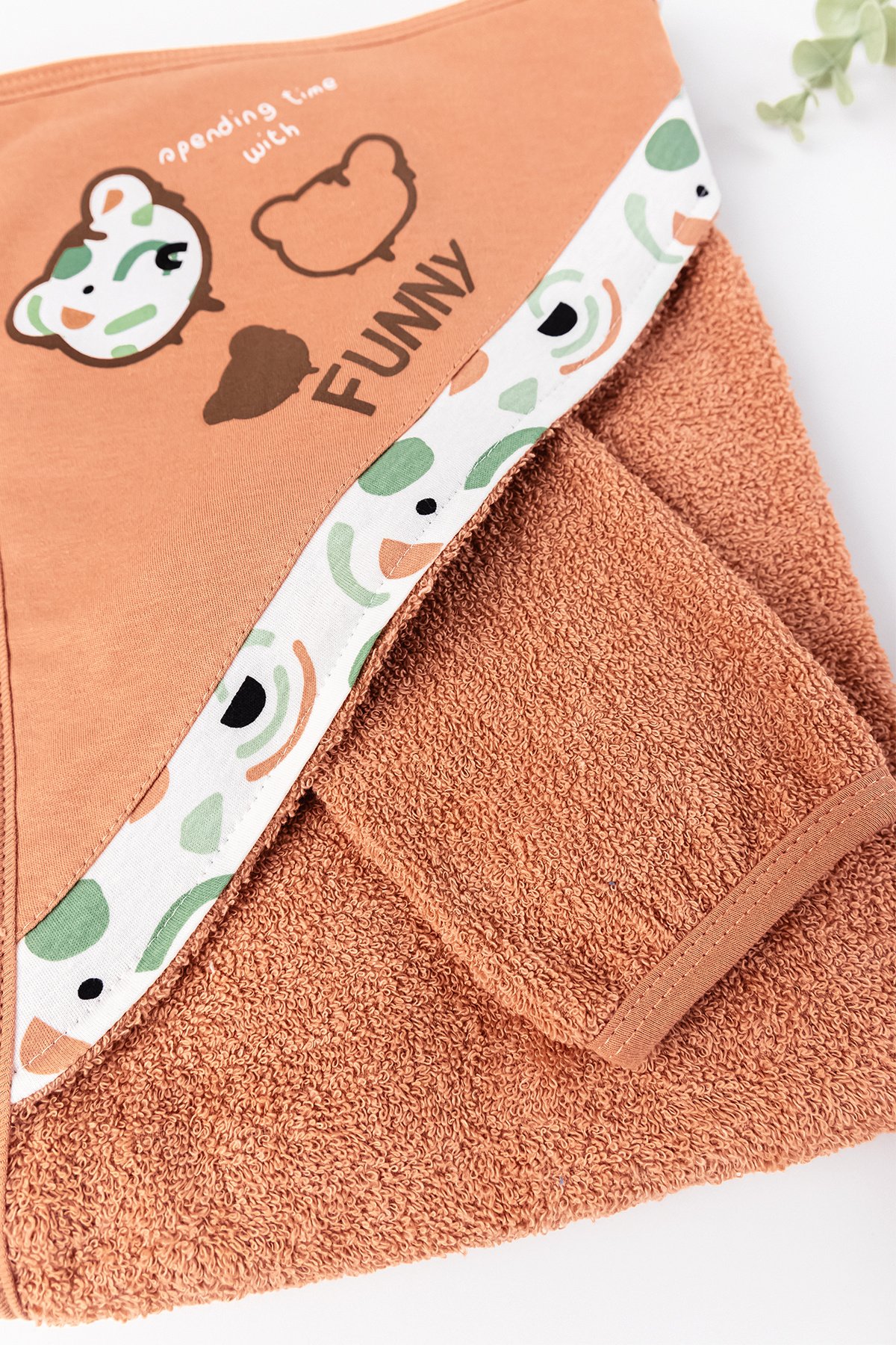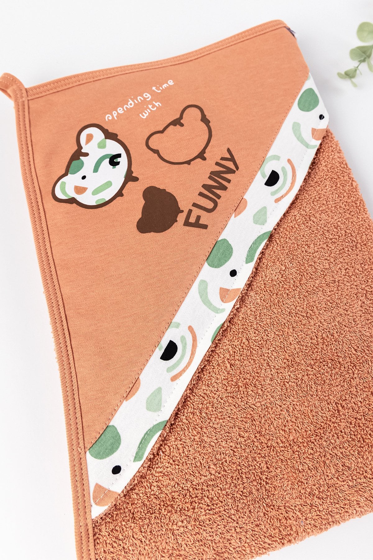 Ayıcık Figürlü 4 Parça Pamuklu Bebek Havlu Bornoz Seti Tarçın - 0-18 Ay