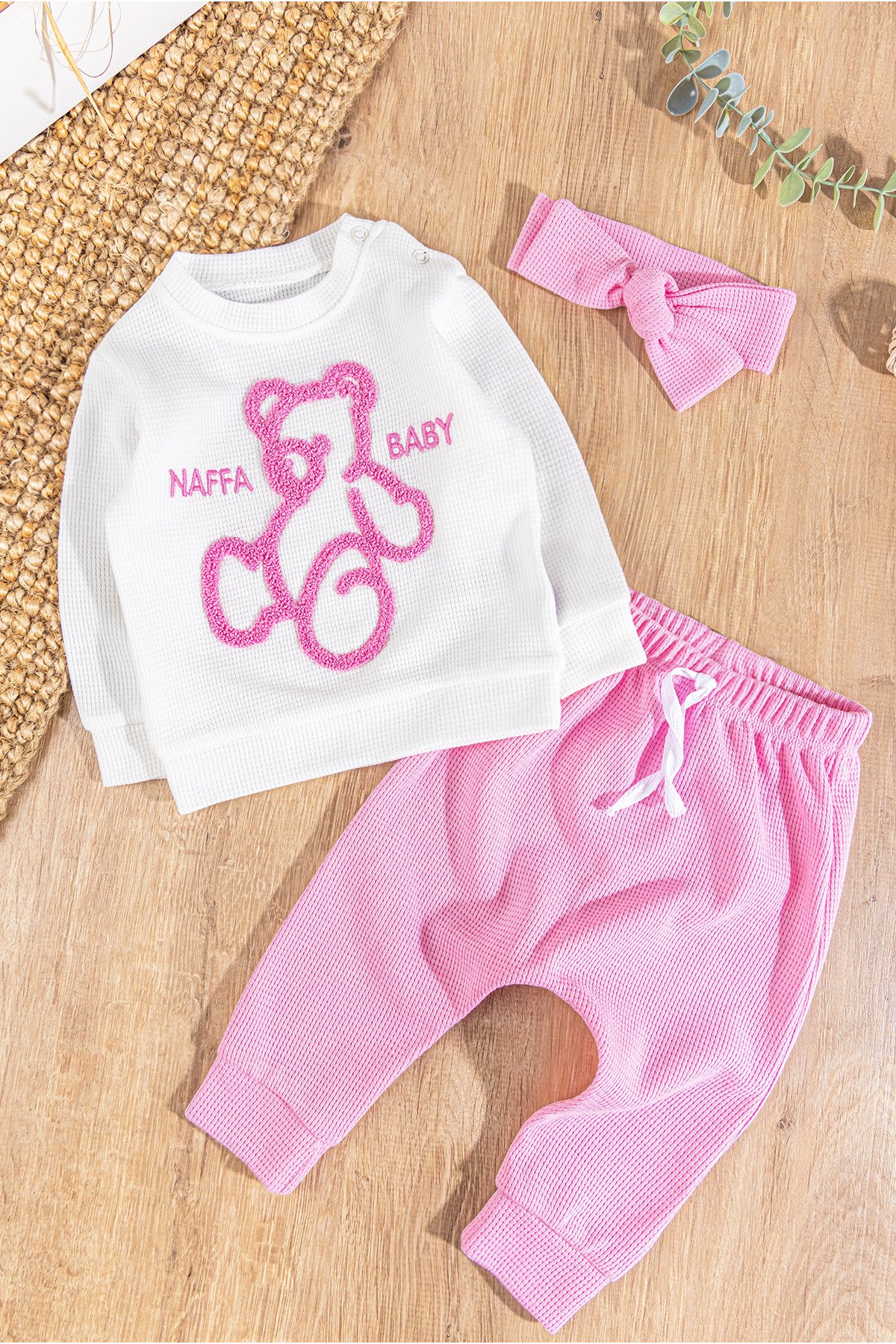 Ayıcık Figürlü Bandanalı 3'lü Kız Bebek Takım