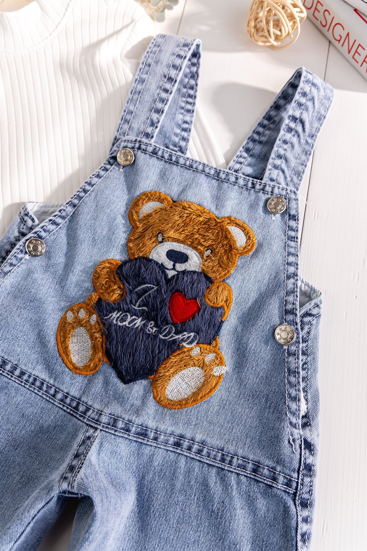 - Denim kumaşın klasik görünümü ile sevimli figür detayları birleşerek tatlı ve enerjik bir tarz sunar.