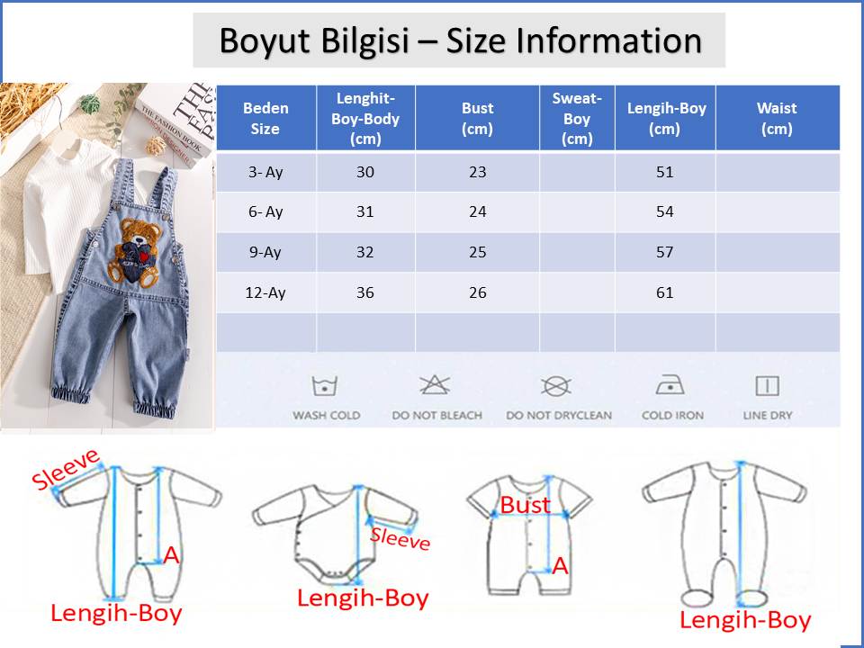 - Erkek bebek salopetin önünde ayıcık fiğürlü süslemelidir