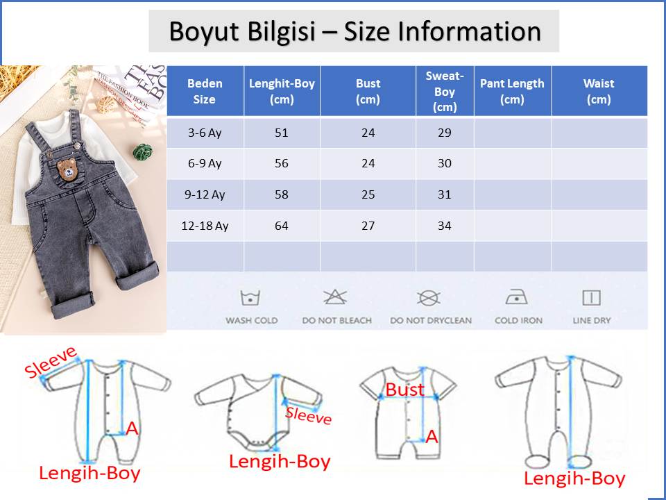 - Erkek bebek salopetin önünde ayıcık fiğürü vardır