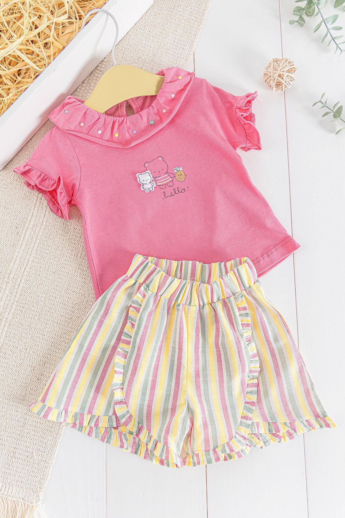 Ayıcık Figürlü Fırfırlı 2'li Yazlık Kız Bebek Takım