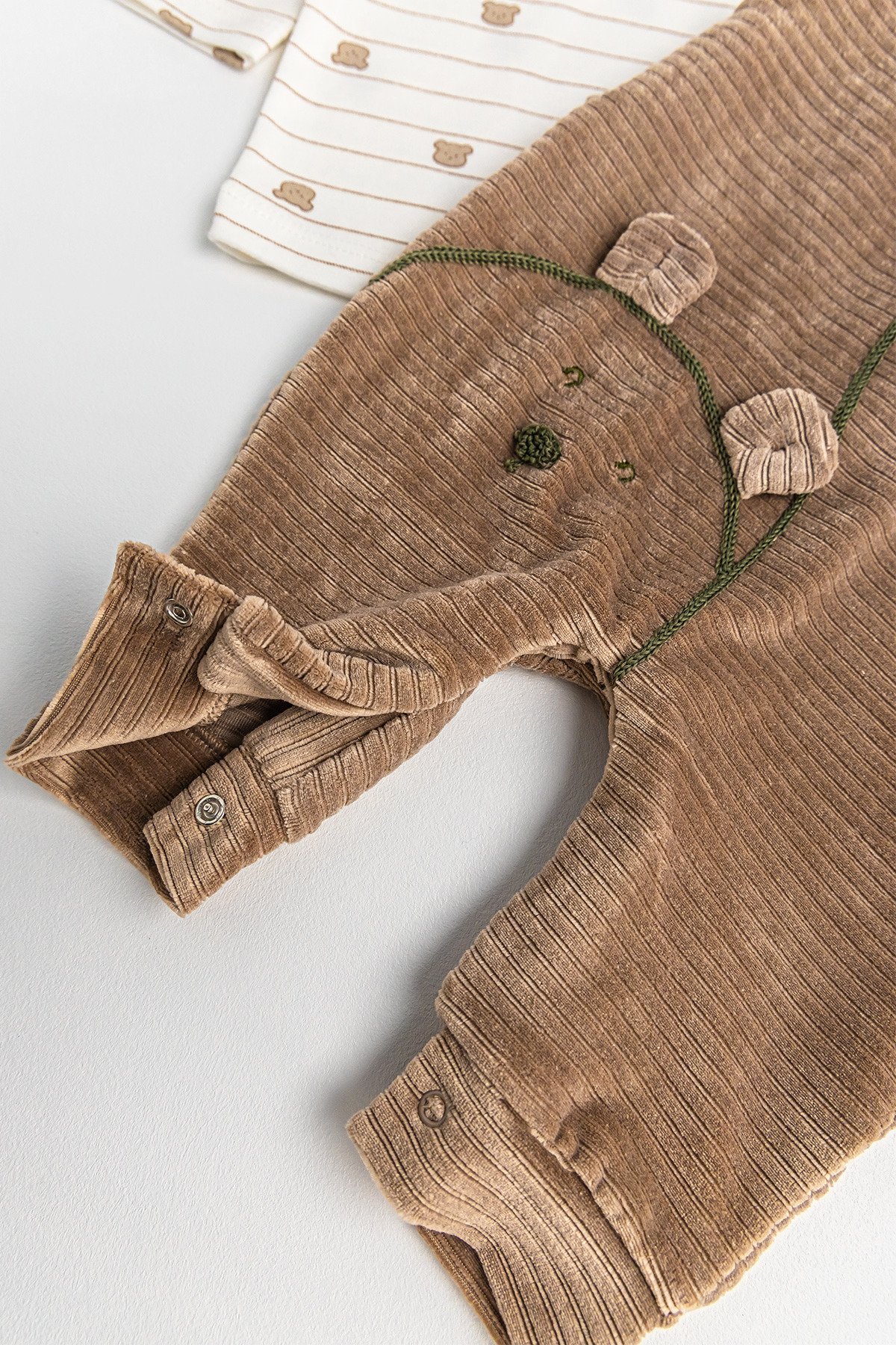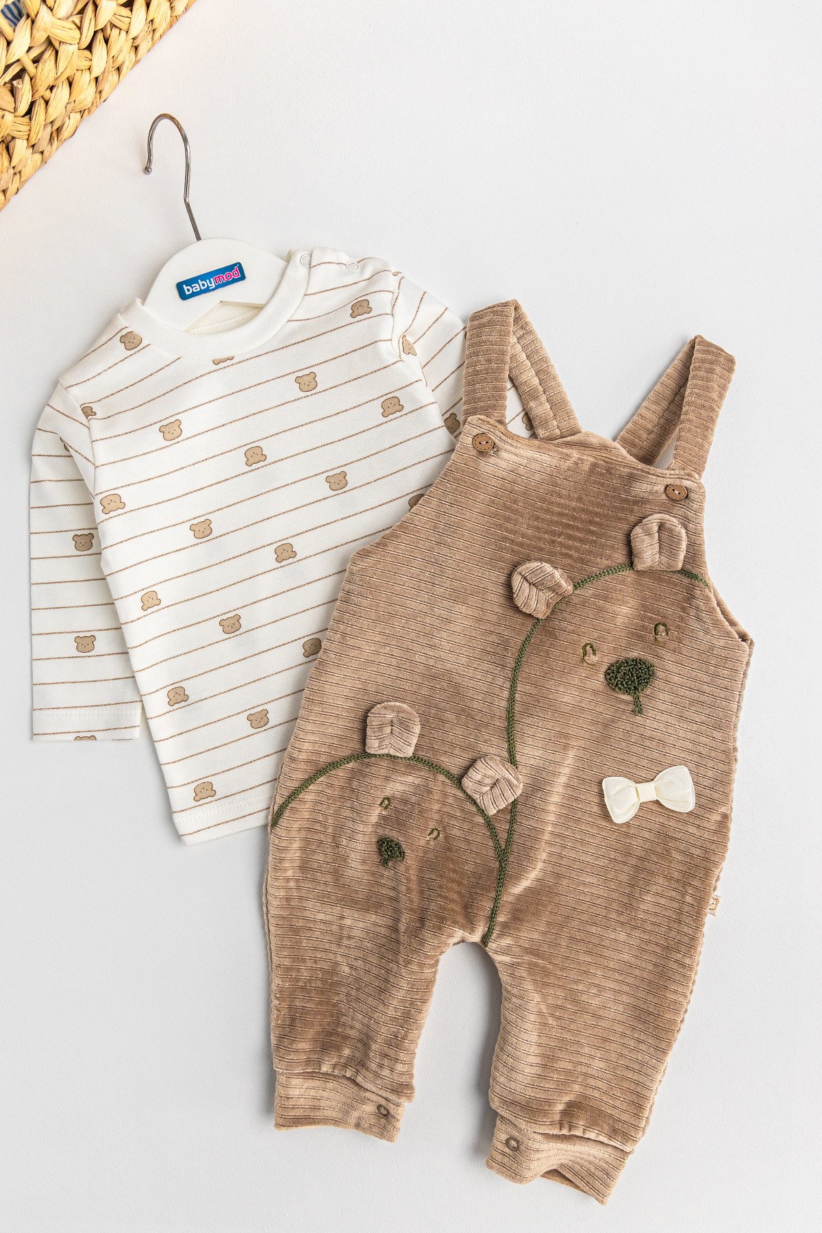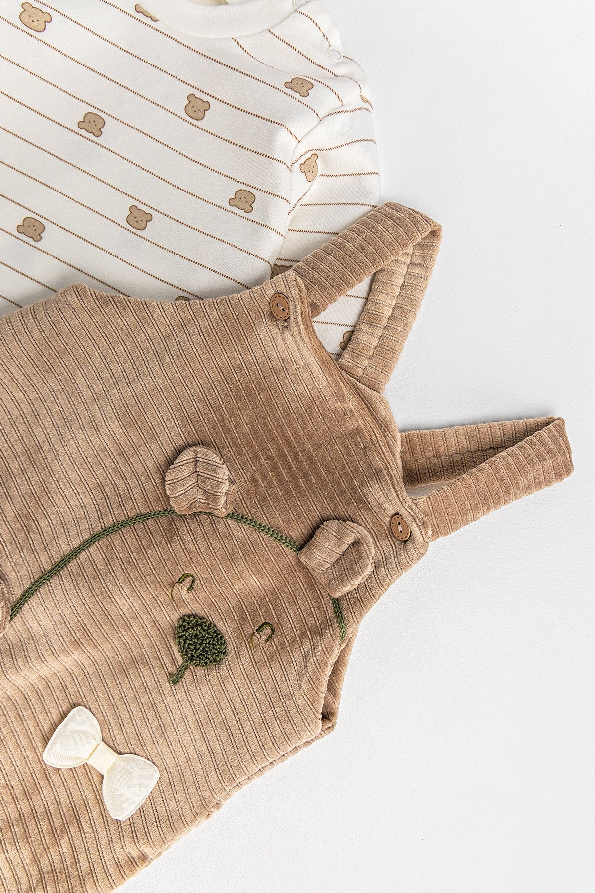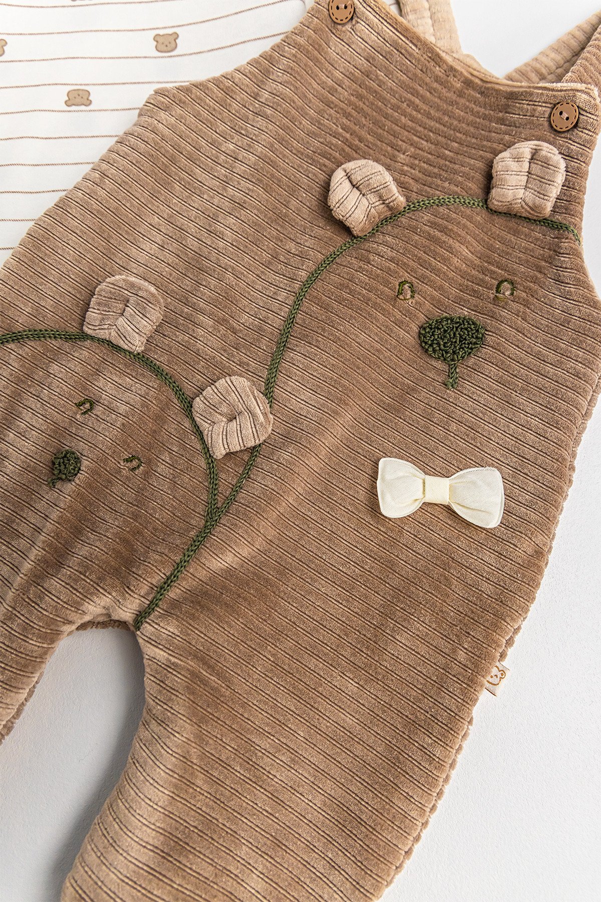 Ayıcık Figürlü Kadife Erkek Bebek Salopet Tulum Takım