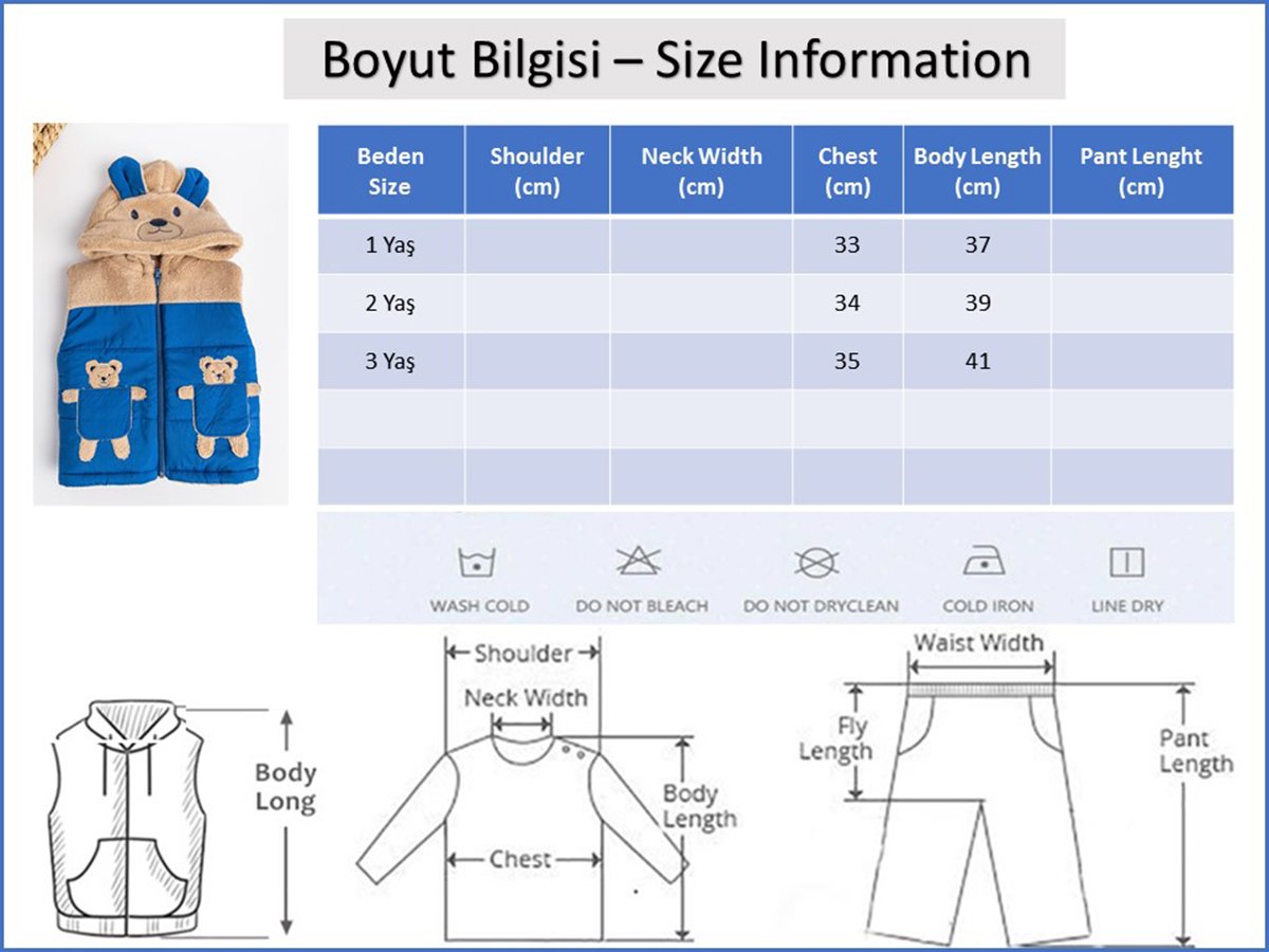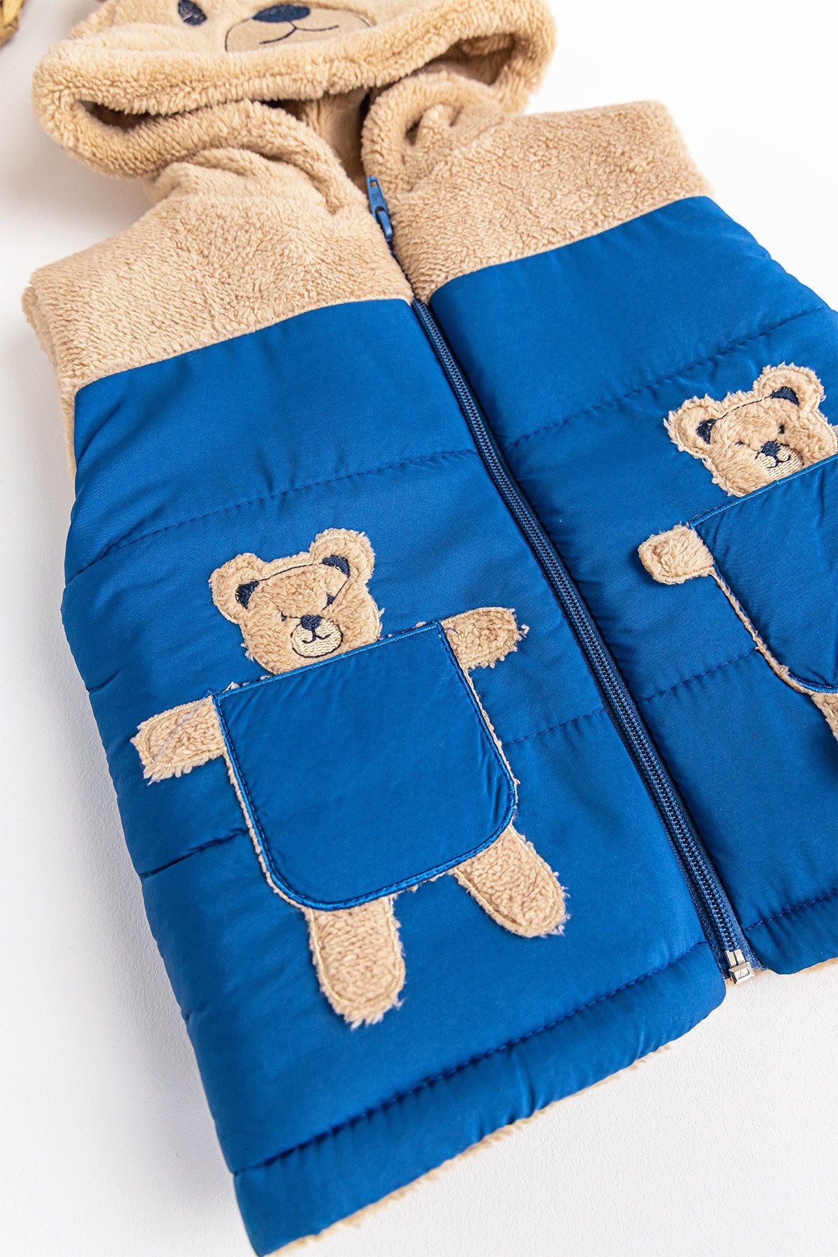 - Yeleğin ön kısmında ayıcık figürlü iki cebi mevcuttur.
