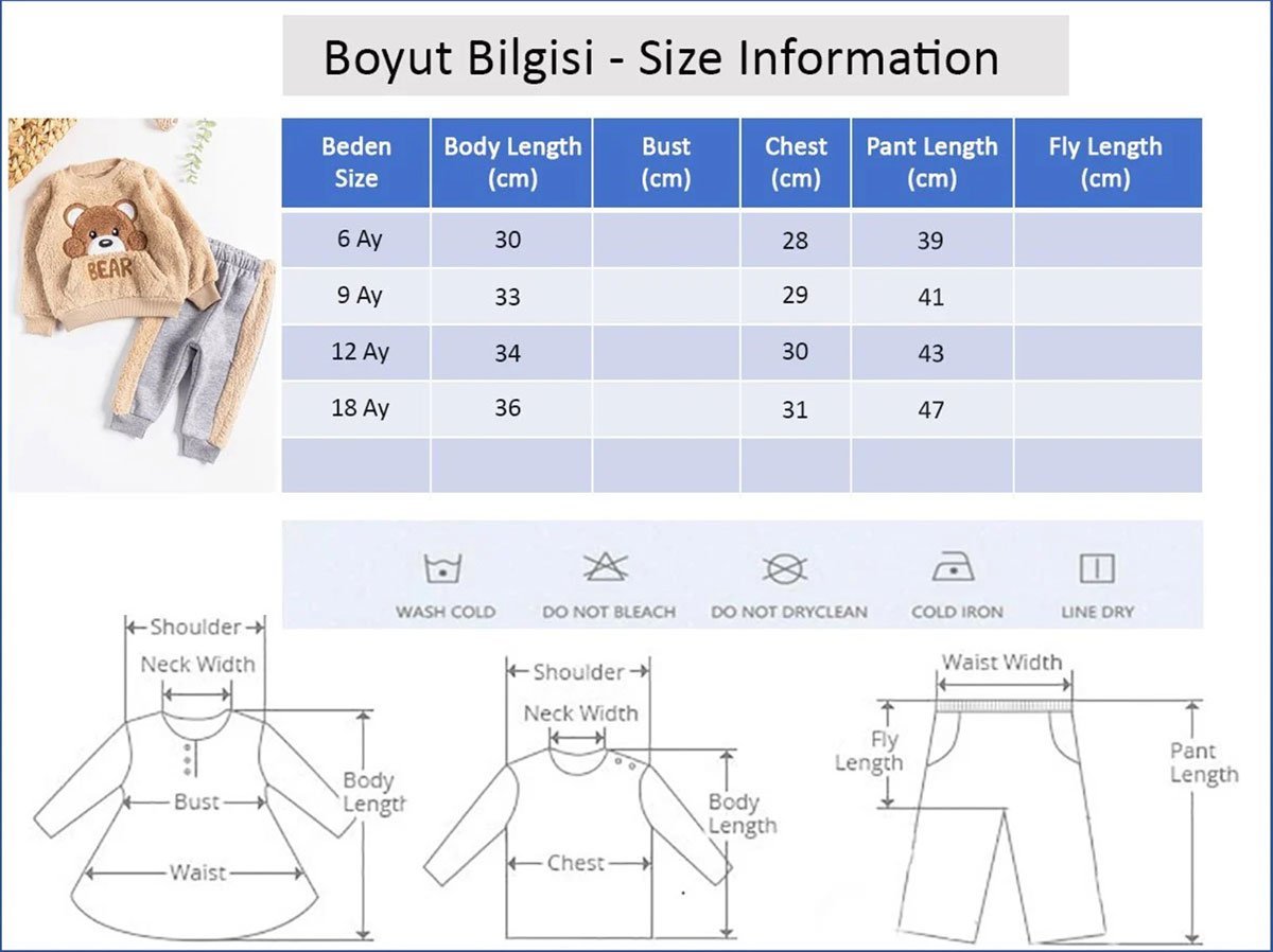 Ayıcık Figürlü Peluş Kışlık Erkek Bebek Takım