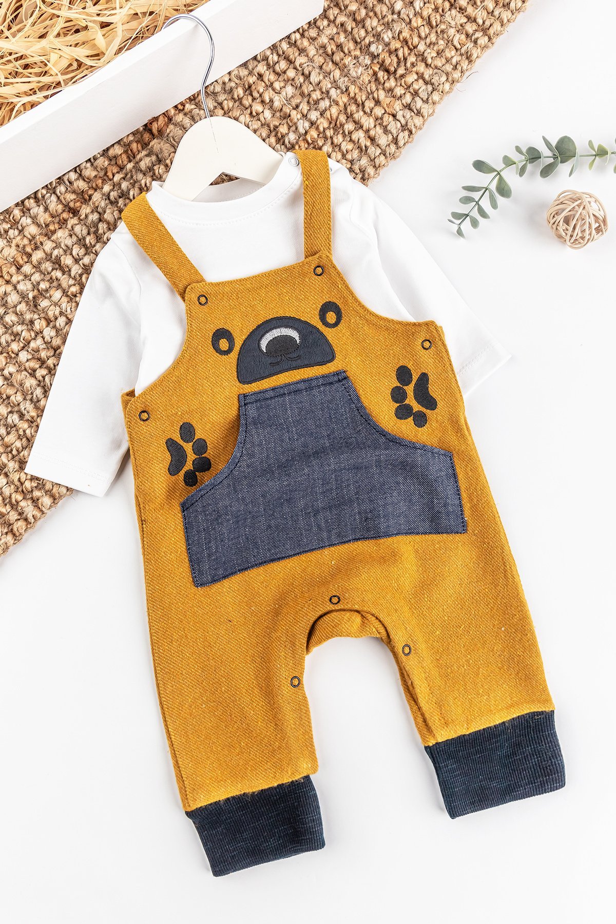 Ayıcık İşlemeli Erkek Bebek Tulum Salopet Takım