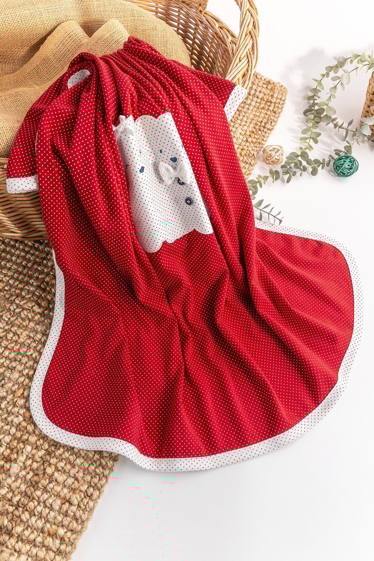 Ayıcık İşlemeli Puantiyeli Çift Katlı Kız/Erkek Bebek Battaniye
