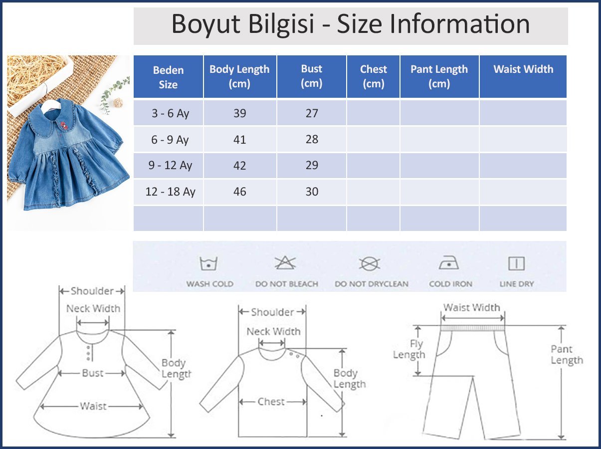 - Bebek elbise soft dokulu denim kumaş ile üretilmiştir.