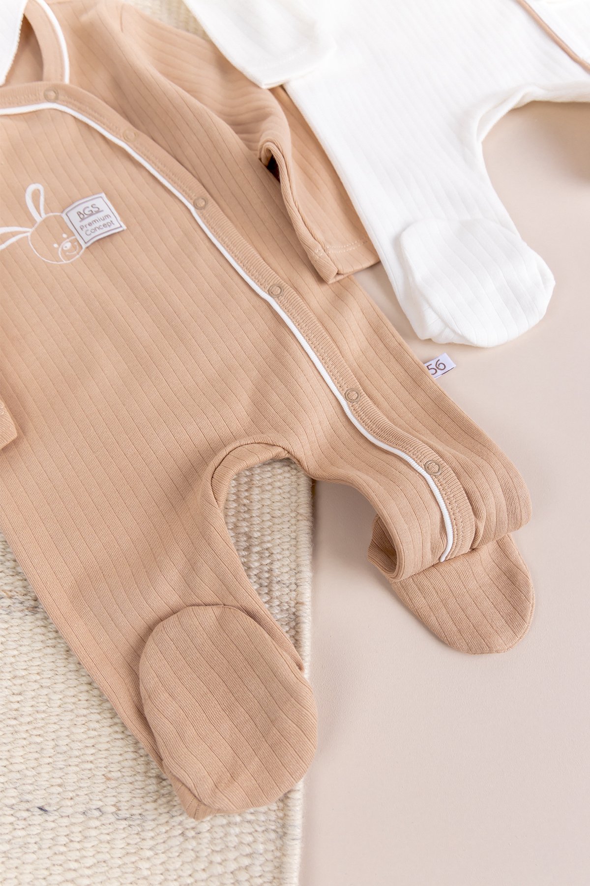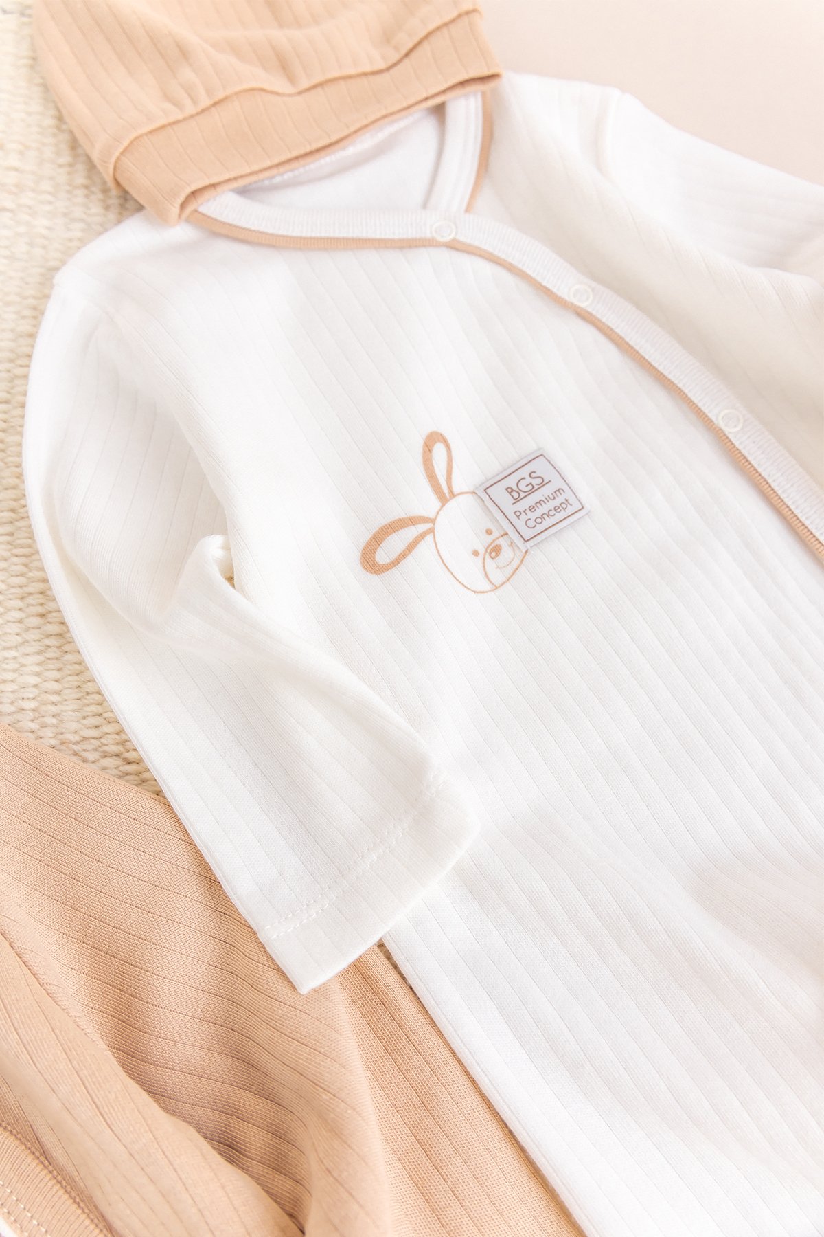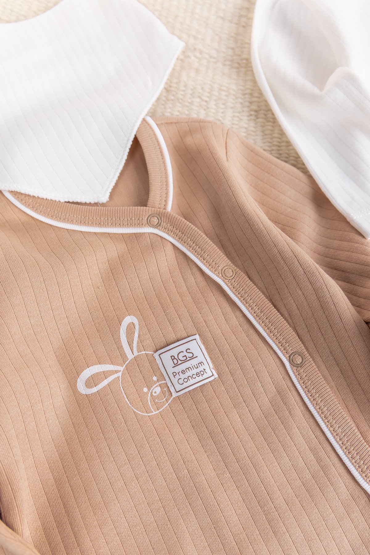 Tavşan Figürlü 2'li Uzun Kollu Kız/Erkek Bebek Tulum Takım BEJ - 3-6 AY