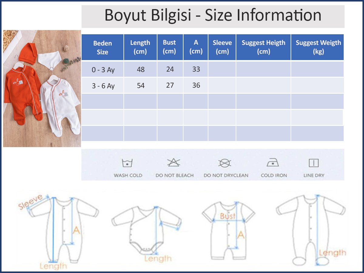 - Görselde kullanılan ürün bedeni 0-3 Ay bedendir.