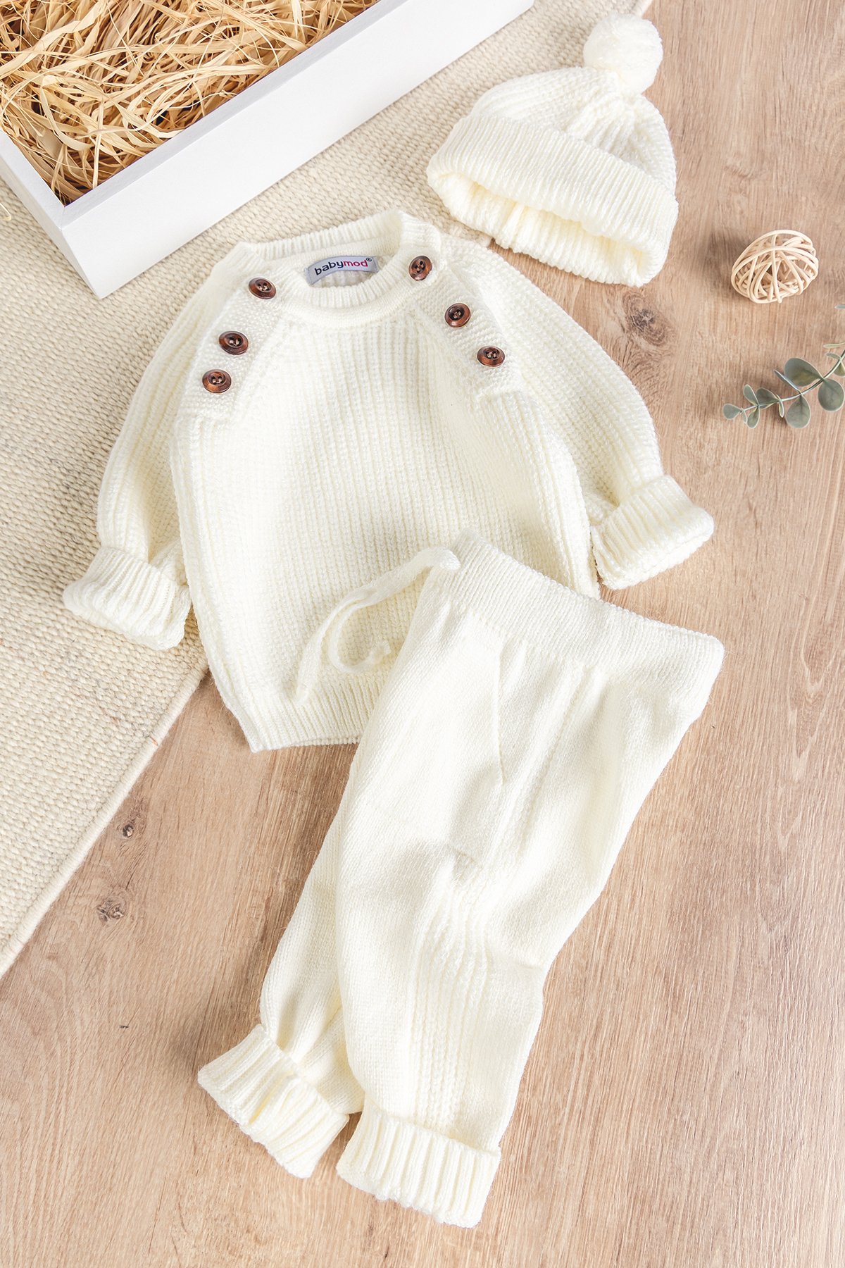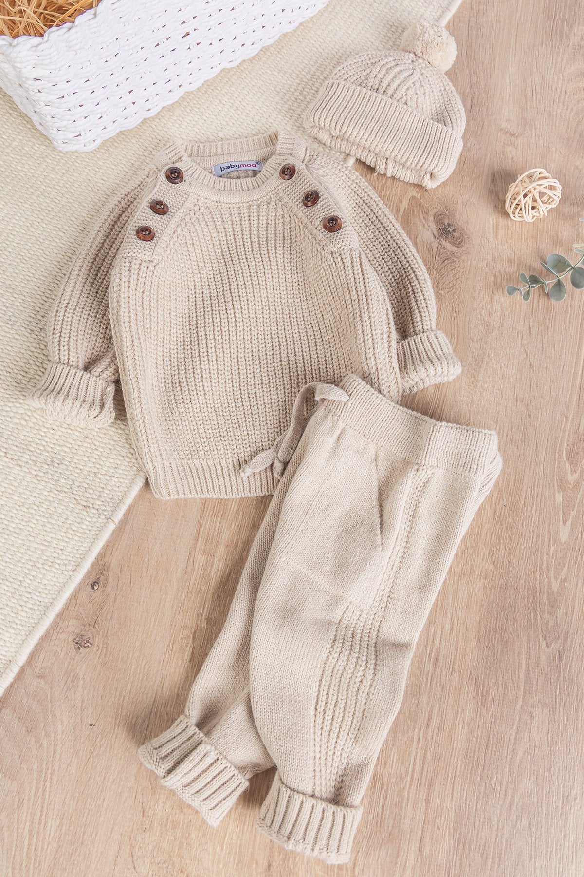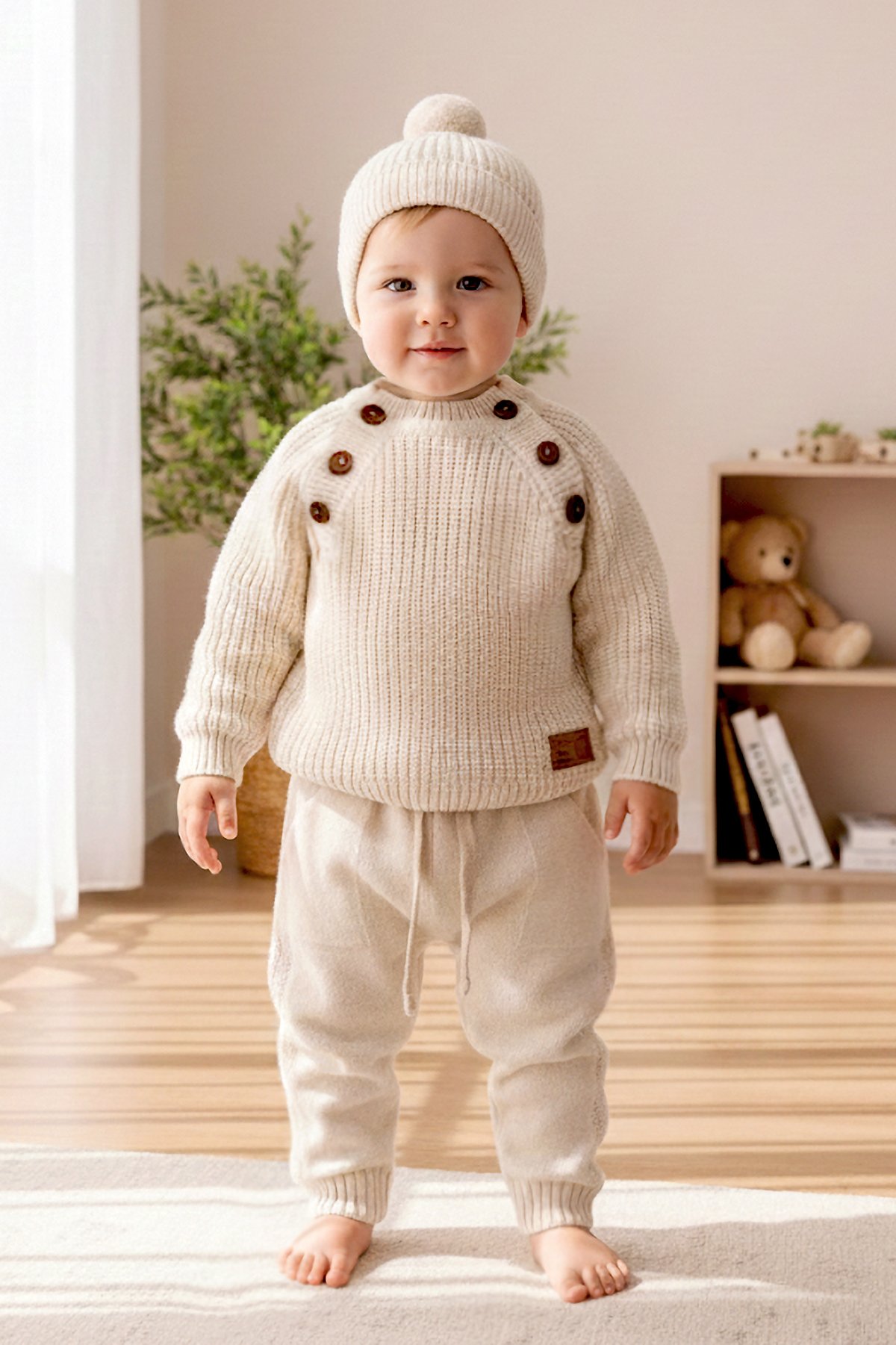 - Bebek sweatın önünün iki yanından düğme iliklemeli modeldir.