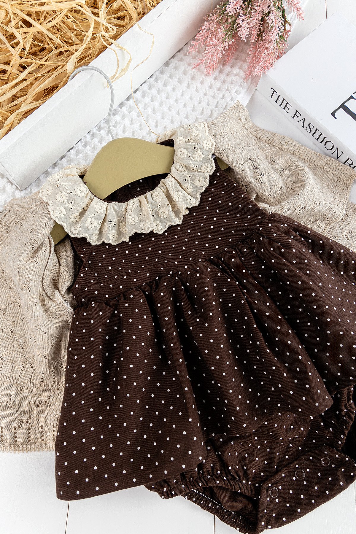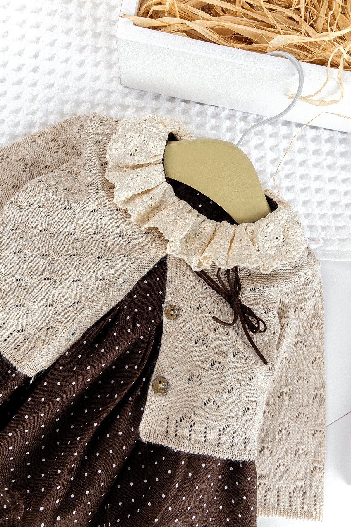 Bolero Hırkalı Puantiye Desenli Kız Bebek Elbise Bebek Tulum