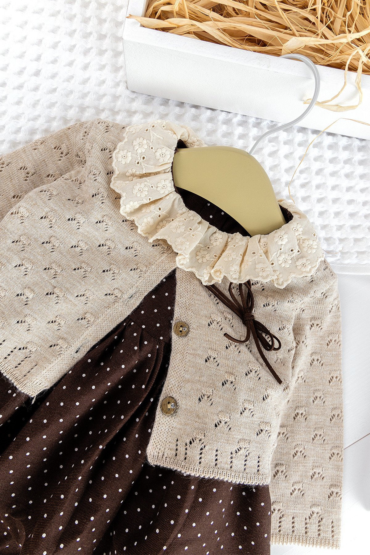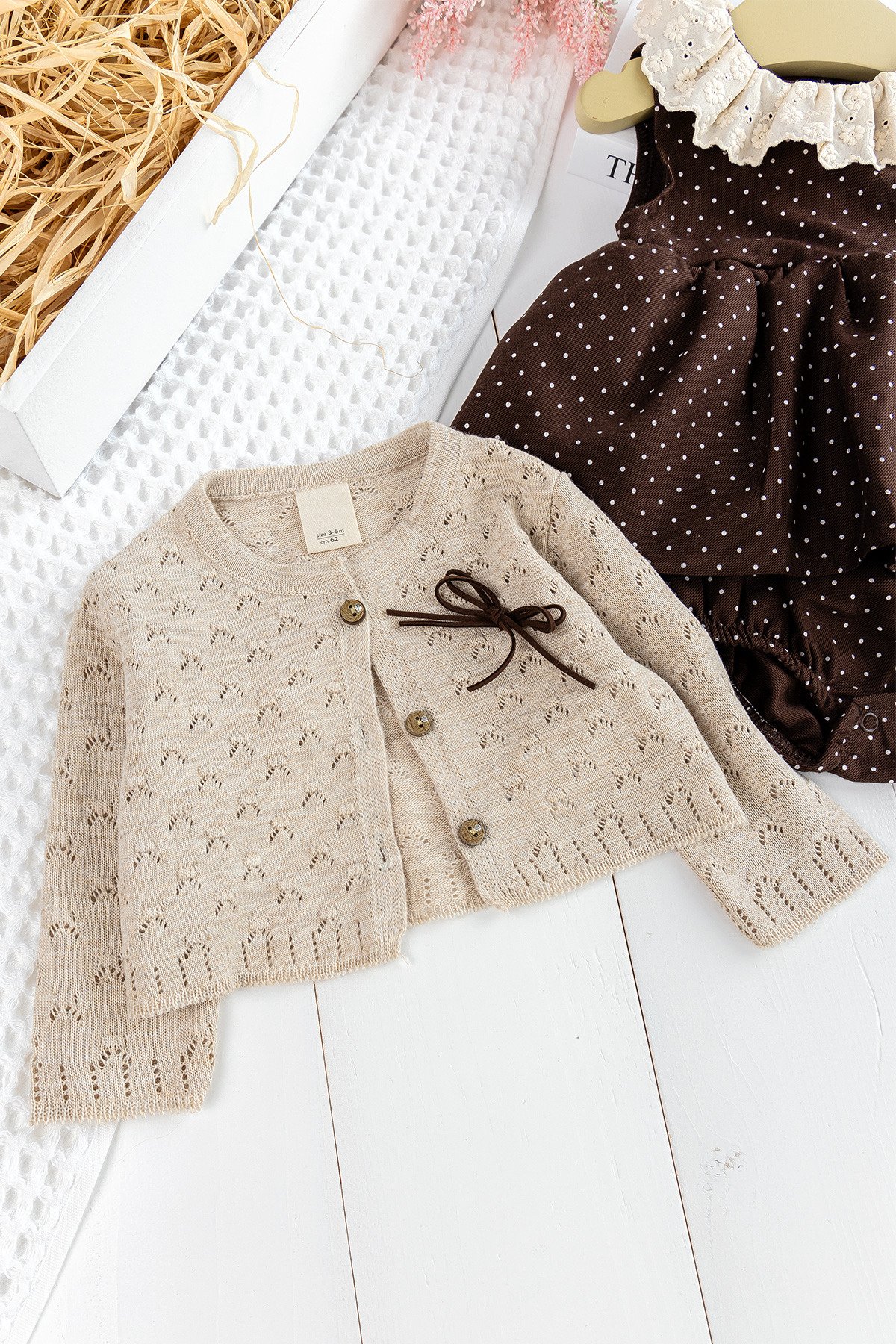 - Bebek hırkanın ön kısmında fiyonk detayı mevcuttur.