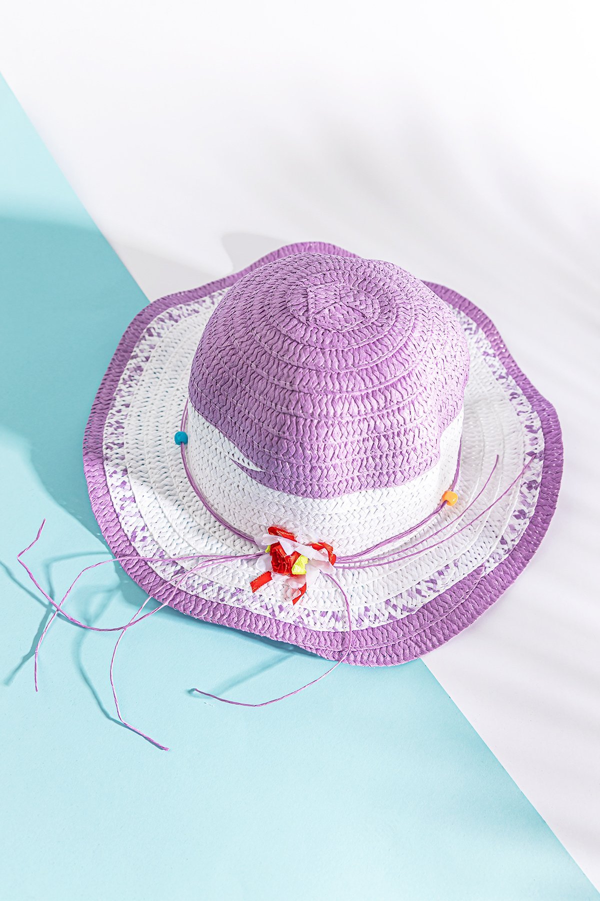 Boncuk Süslemeli Kız Çocuk Hasır Şapka