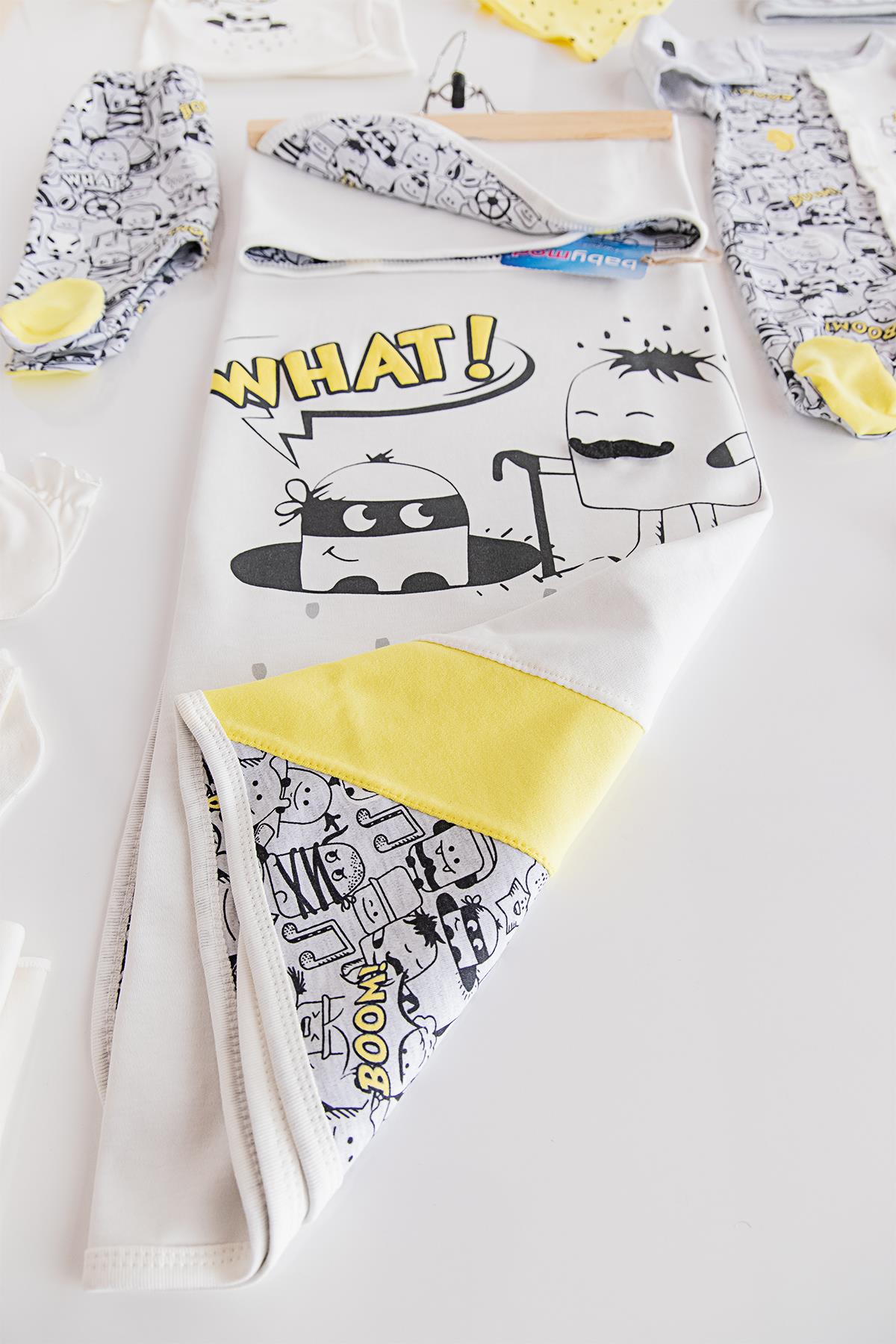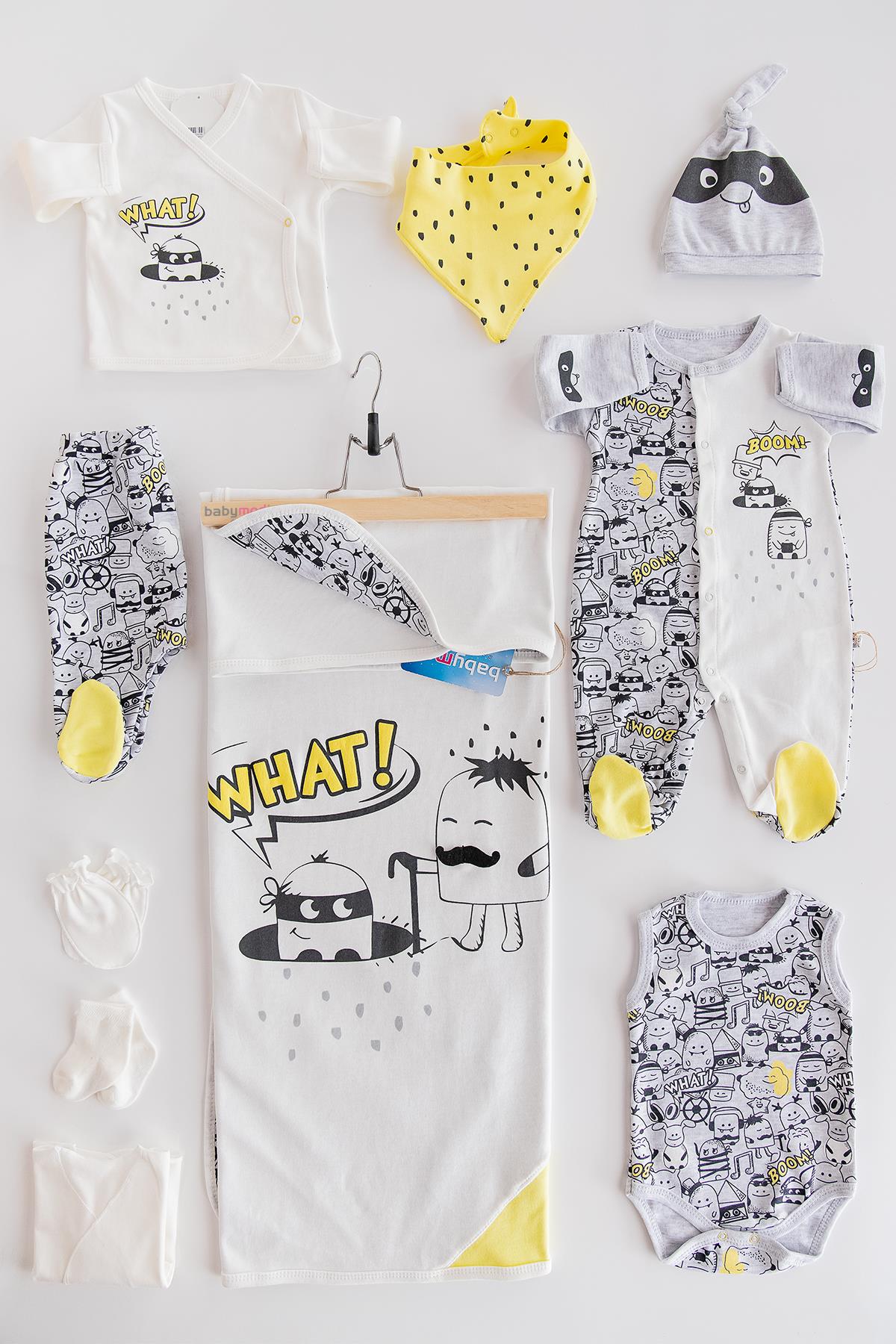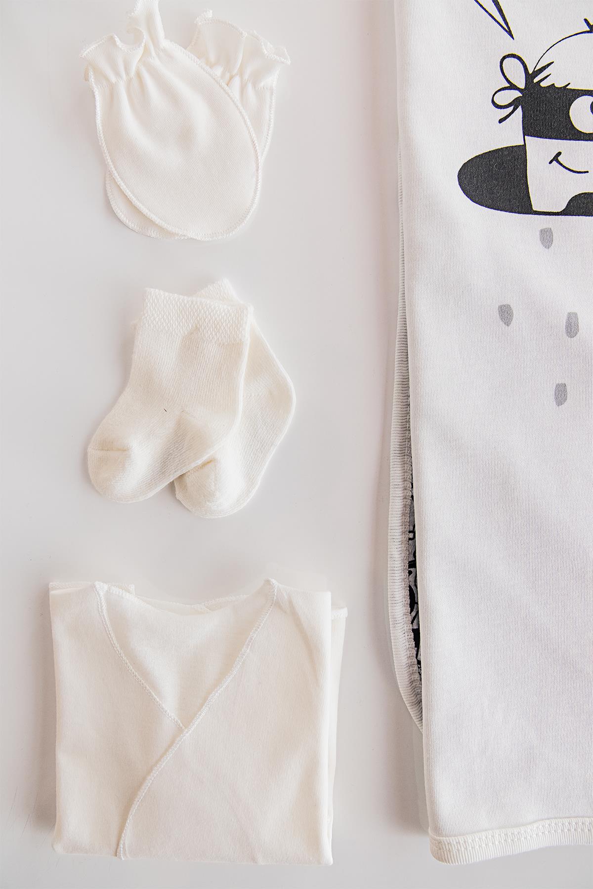 Boom Baskılı Hastane Çıkışı Erkek Bebek Zıbın Seti BEJ - 0-3 AY