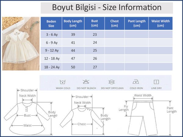 - Bebek elbisenin içi pamuklu astarlıdır.