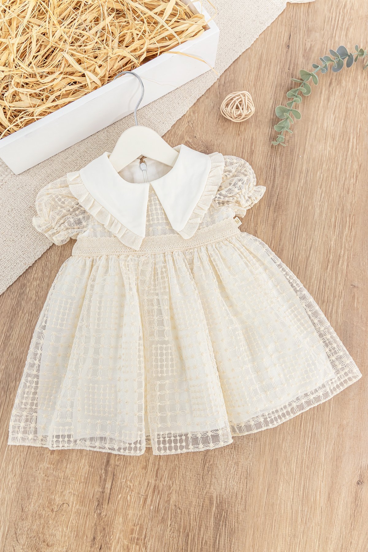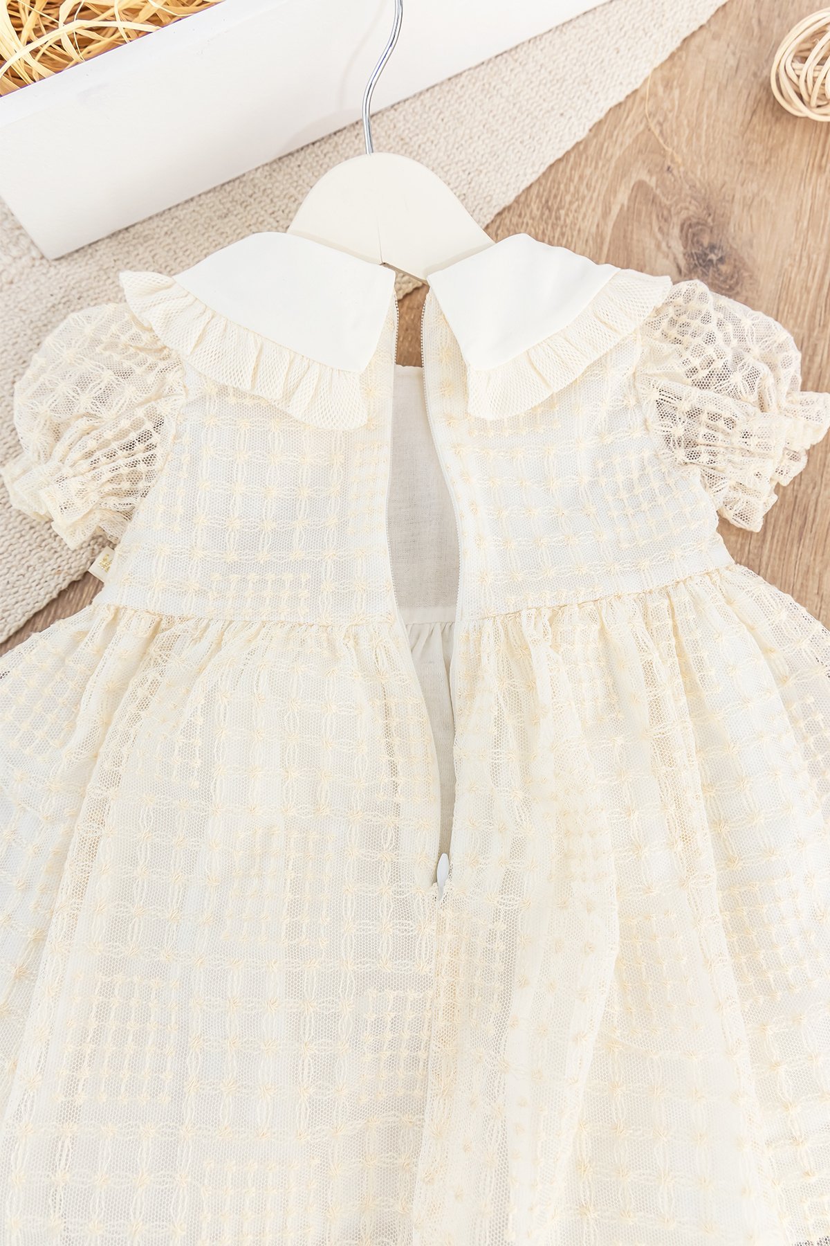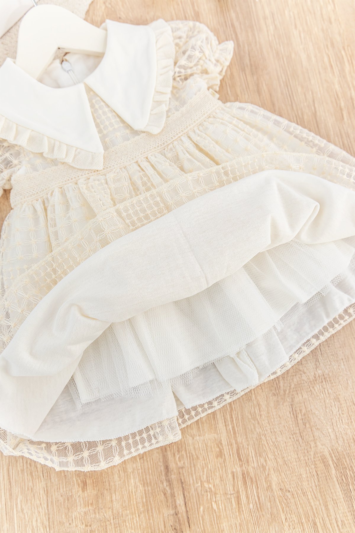 - Bebek elbise brodeli tül kumaş ile üretilmiştir.