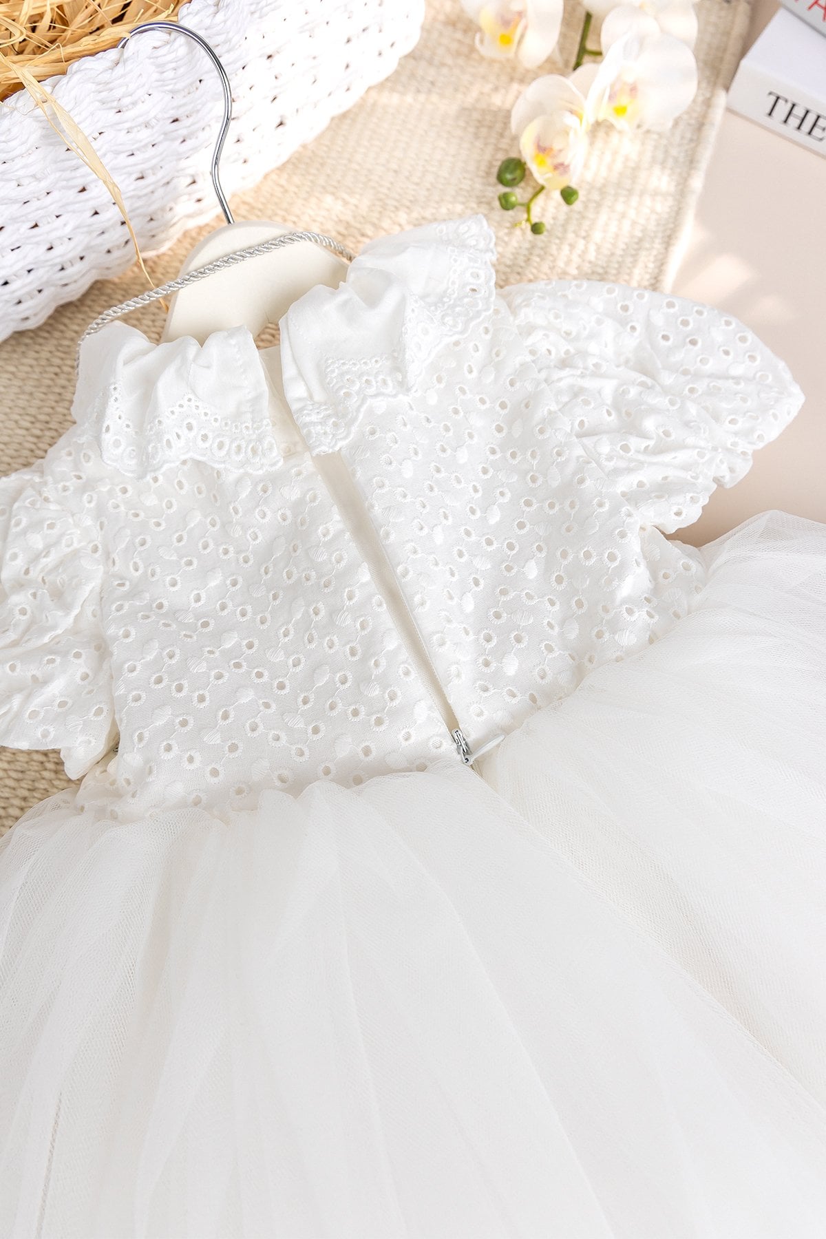 Çantalı Fisto Yakalı 100% Pamuk Kız Bebek Çocuk Elbise Ekru