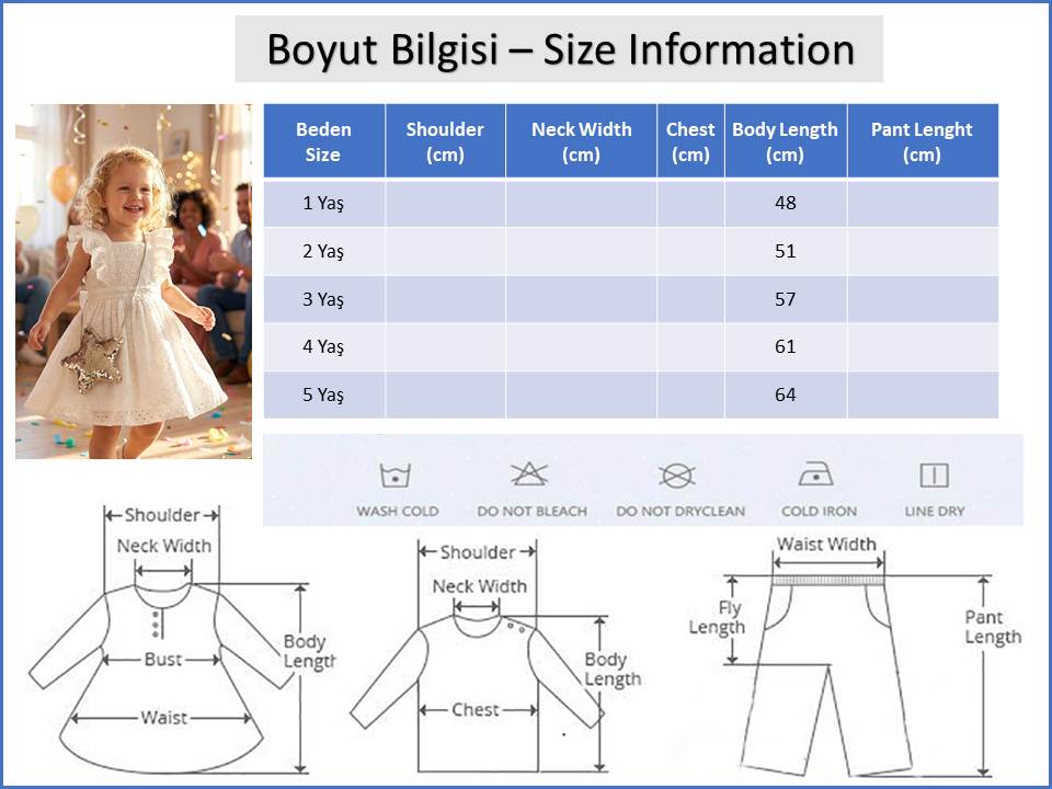 - Doğum günü, davet, bayram ve özel organizasyonlarda tercih edilebilecek bu elbise; yumuşak dokusu sayesinde hassas çocuk cildine dosttur.