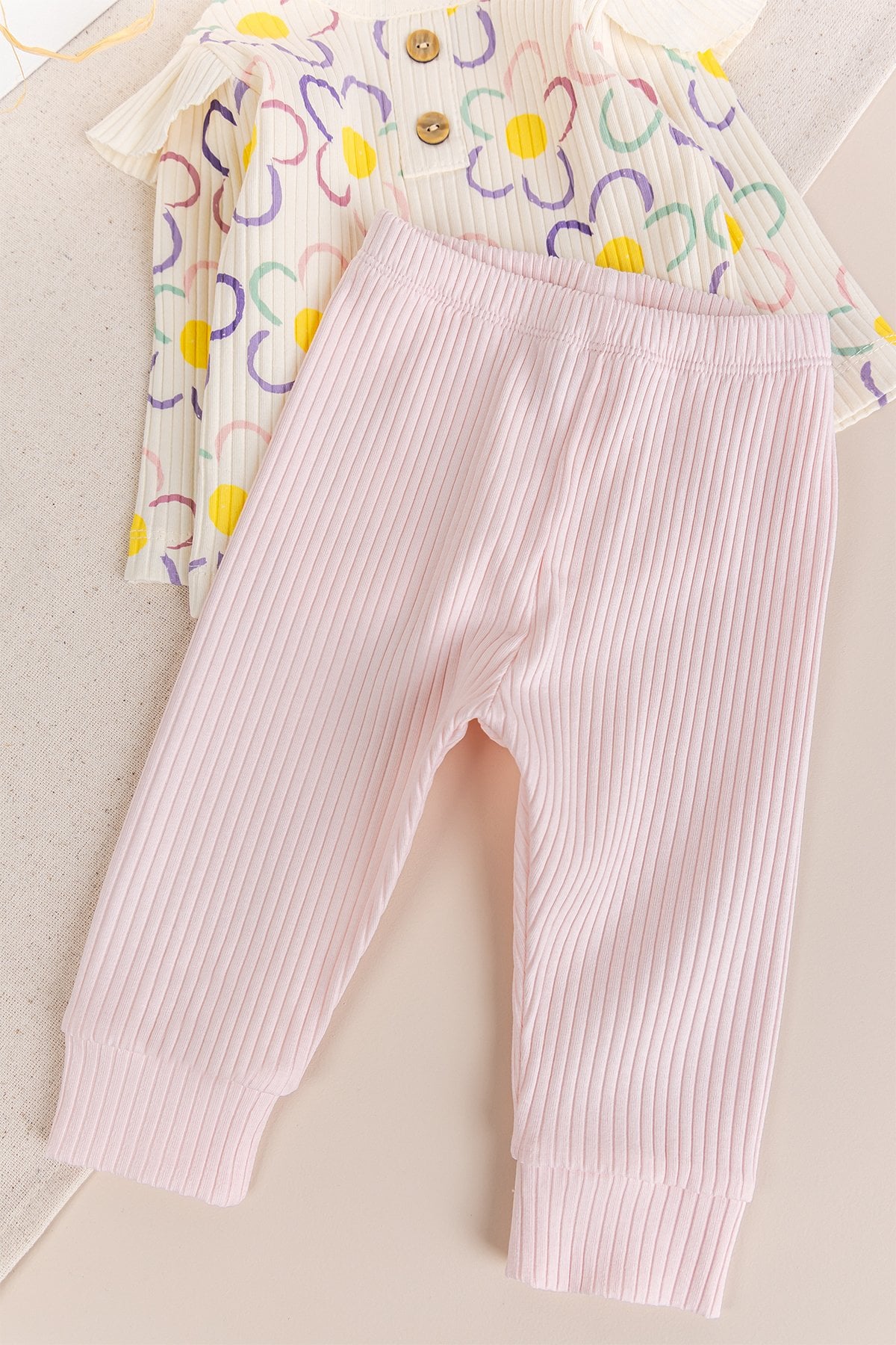 Çiçek Desenli 100% Pamuk Kız Bebek Pijama Takımı