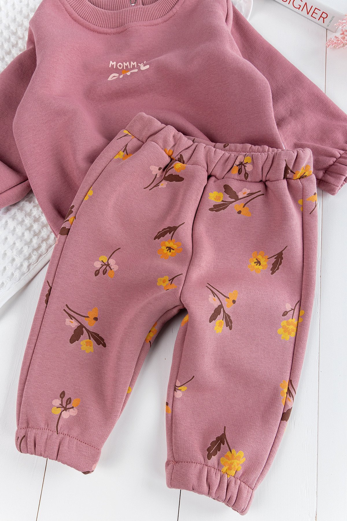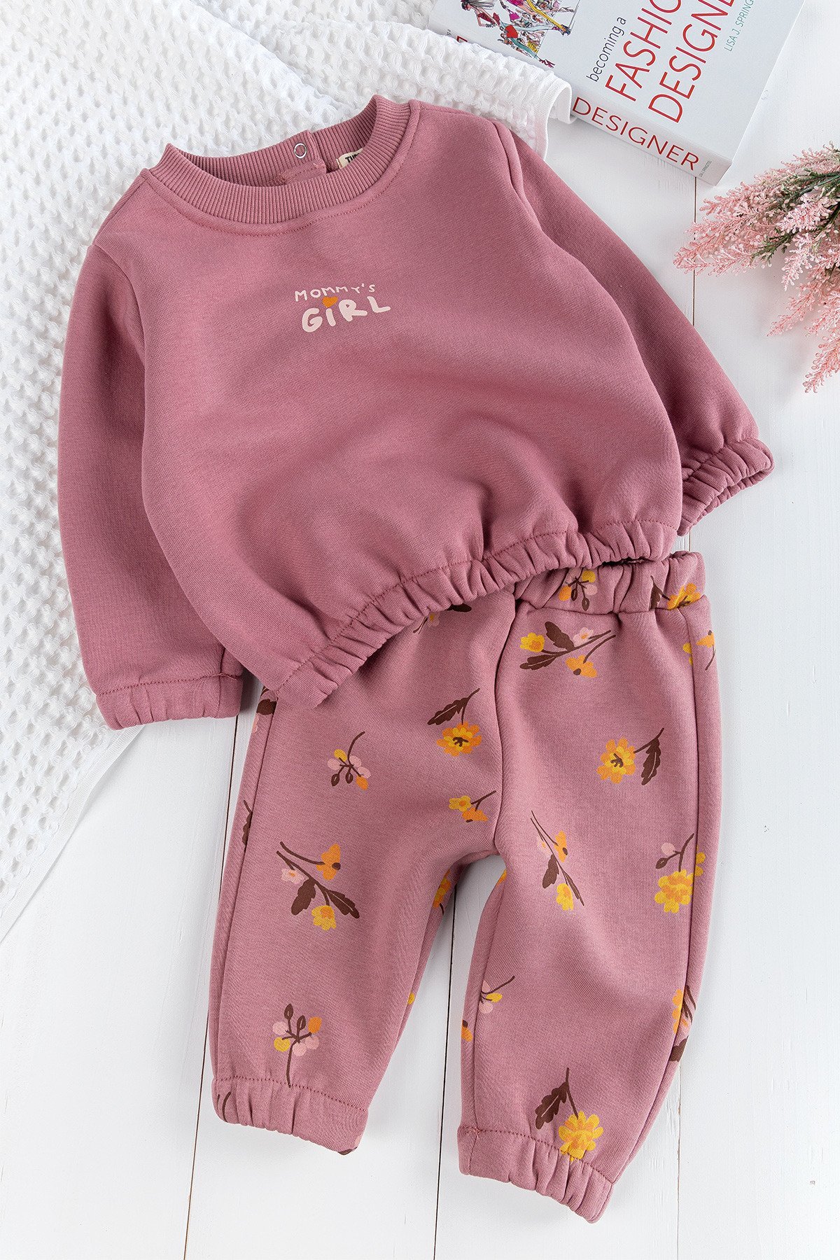 Çiçek Desenli 2'li Kışlık Kız Bebek Takım