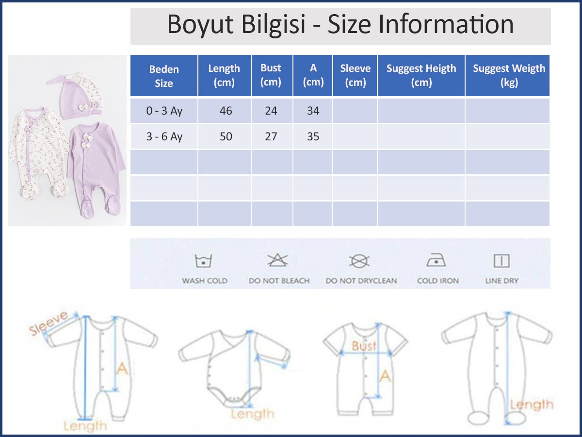 - Görselde kullanılan ürün bedeni 0-3 Ay bedendir.