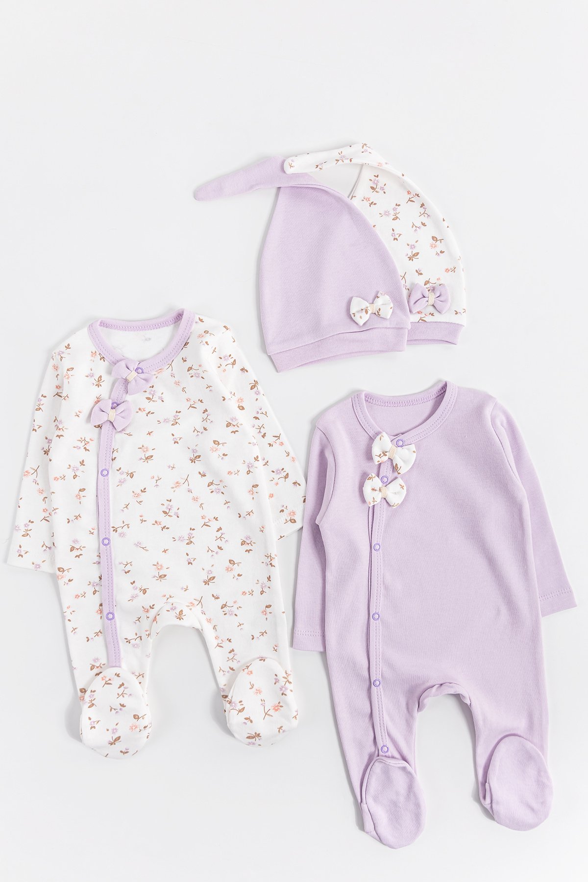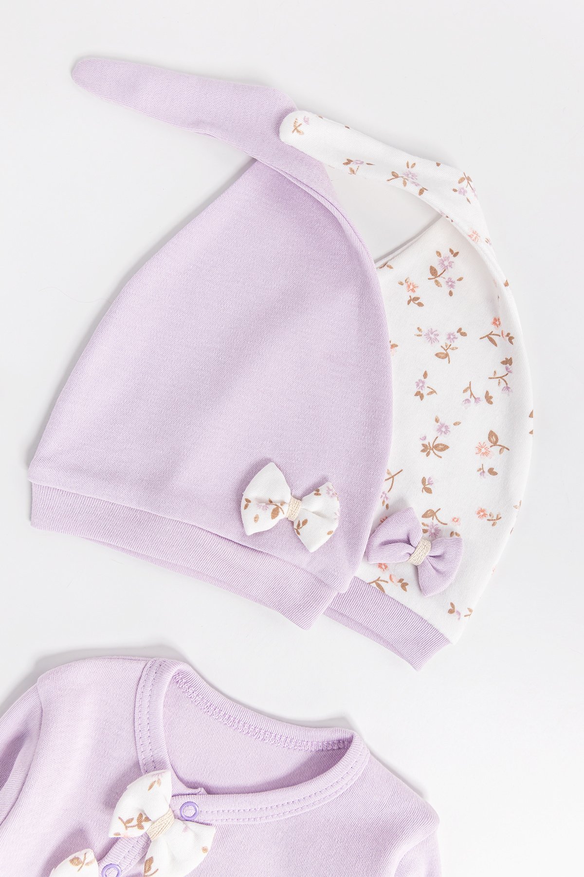- Bebek tulumlardan biri çiçek desenlidir.