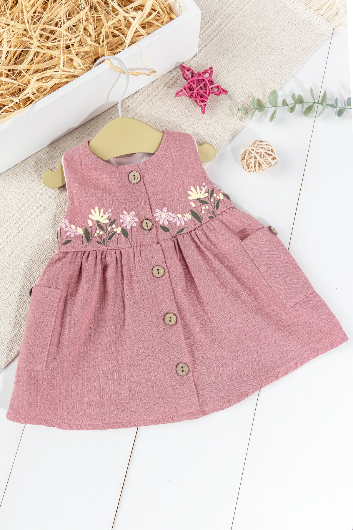 - Bebek elbise soft dokulu pamuklu müslin kumaş ile üretilmiştir.