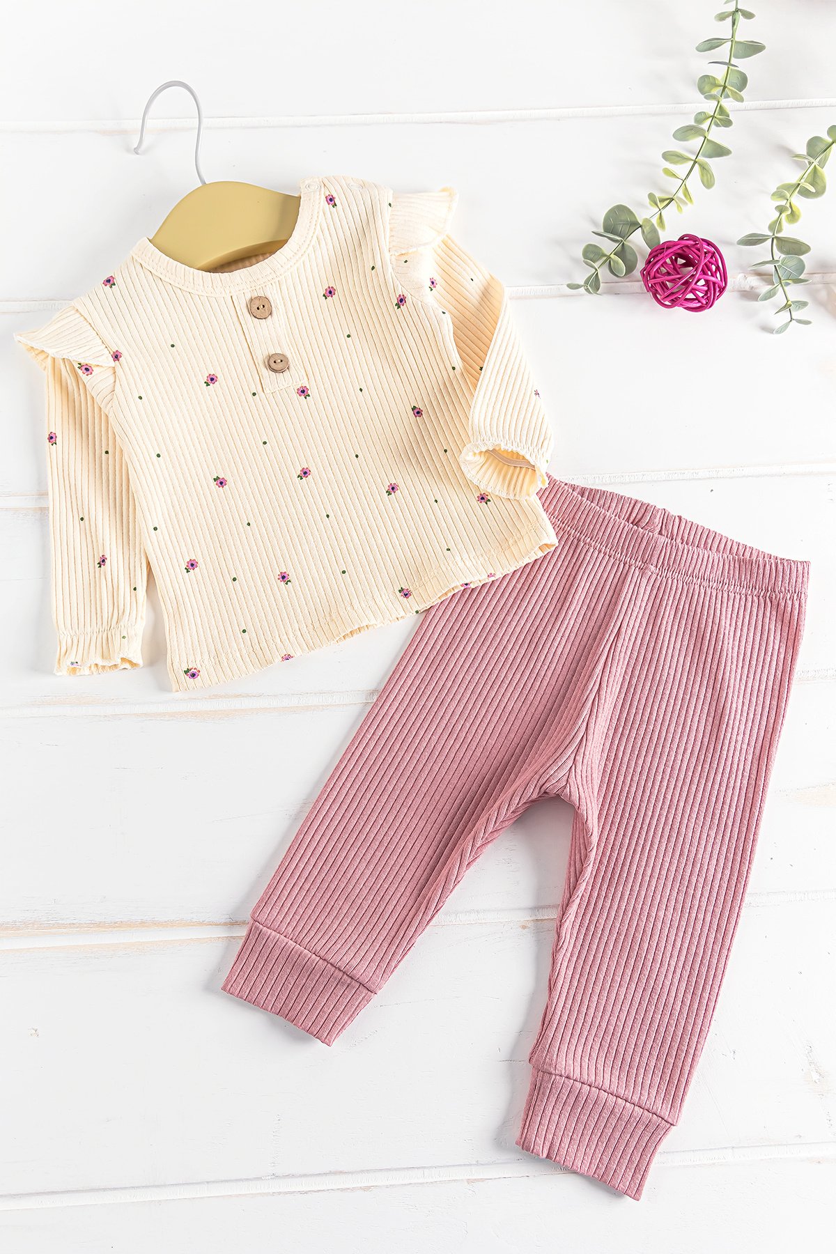 Çiçek Desenli Fırfırlı 2'li Kız Bebek Takım