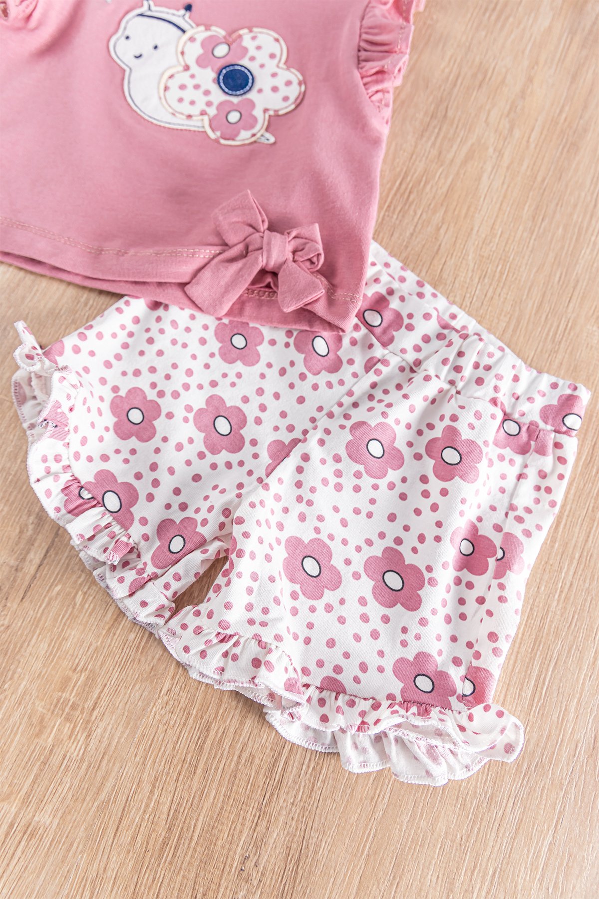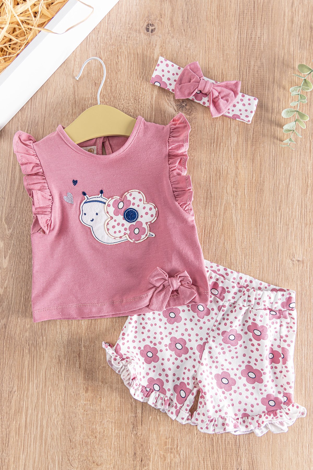 Çiçek Desenli Fırfırlı 3'lü Yazlık Kız Bebek Takım
