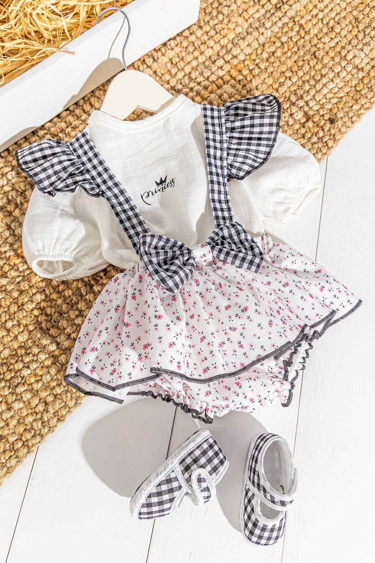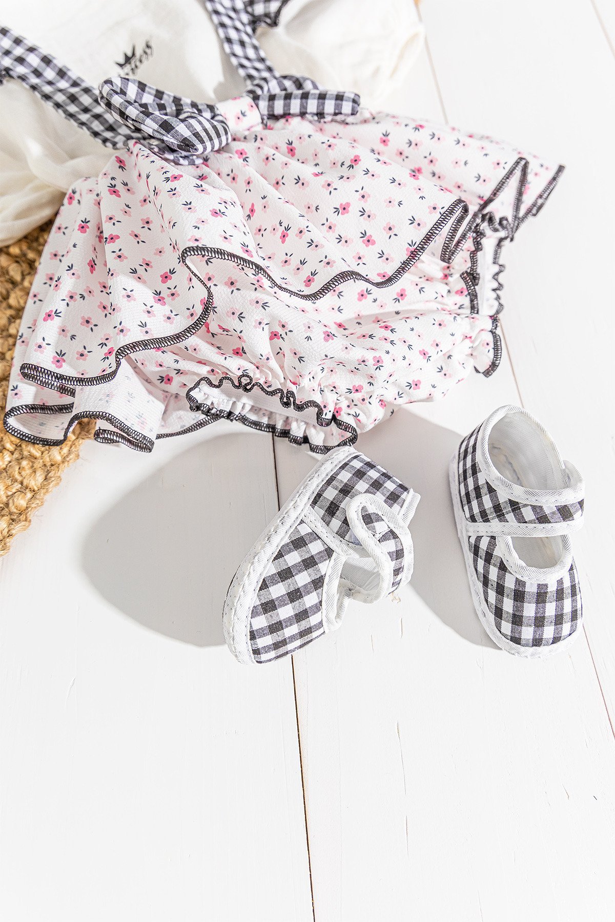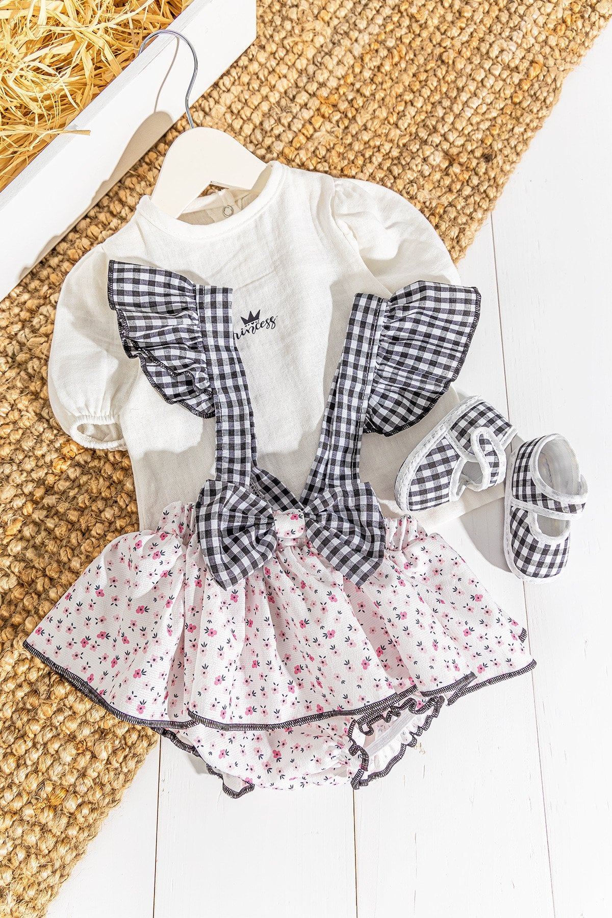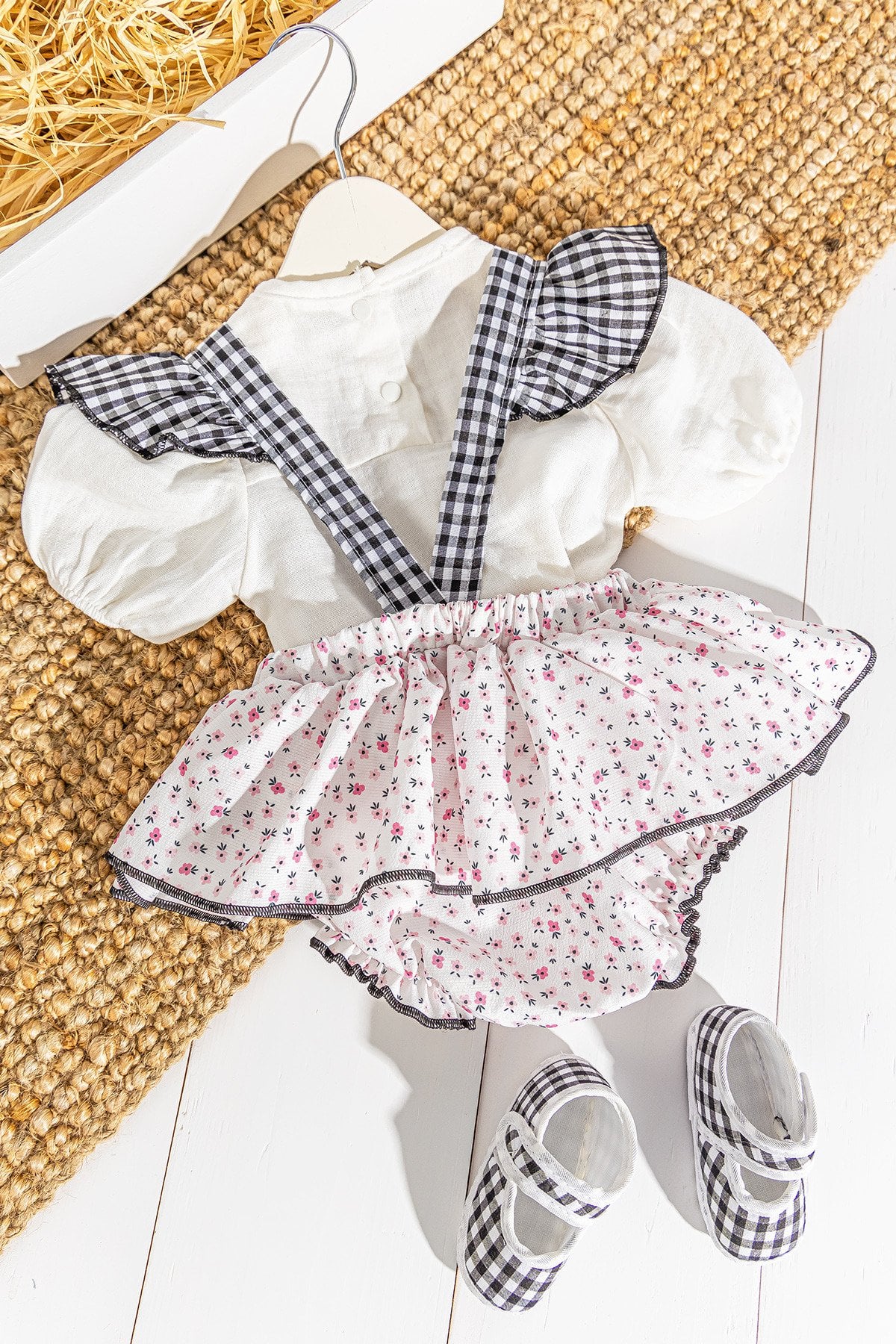 - Bebek tulum salopet çiçek desenlidir.