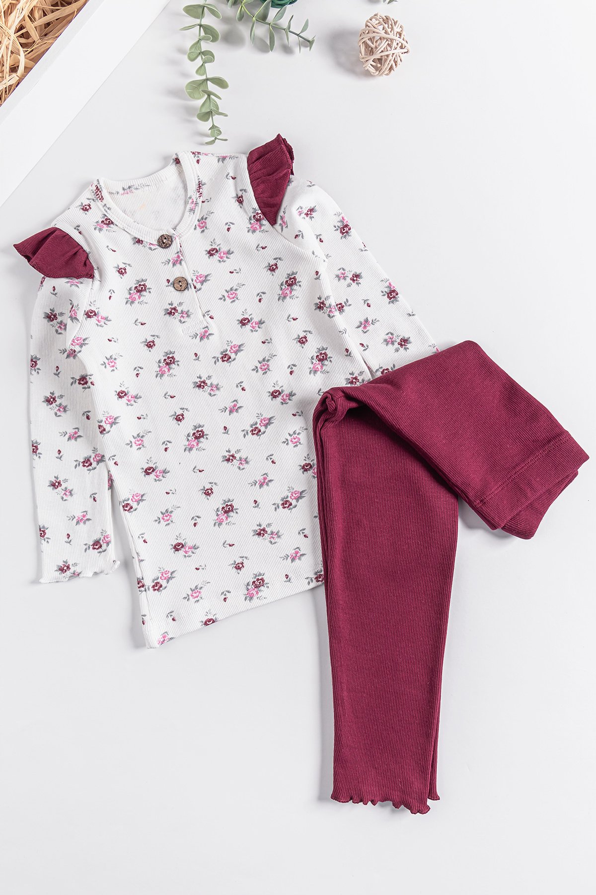 Çiçek Desenli Fırfırlı Kız Çocuk Pijama Takımı