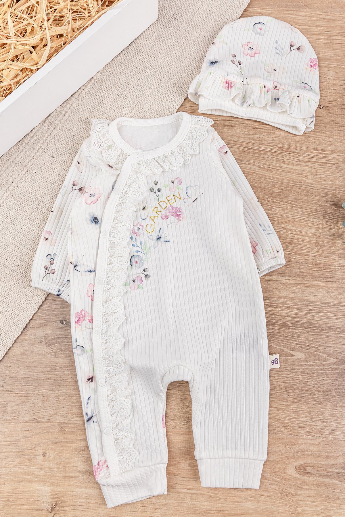 Babymod Baby Girl Jumpsuit Set with Floral Patterned Laced Hat