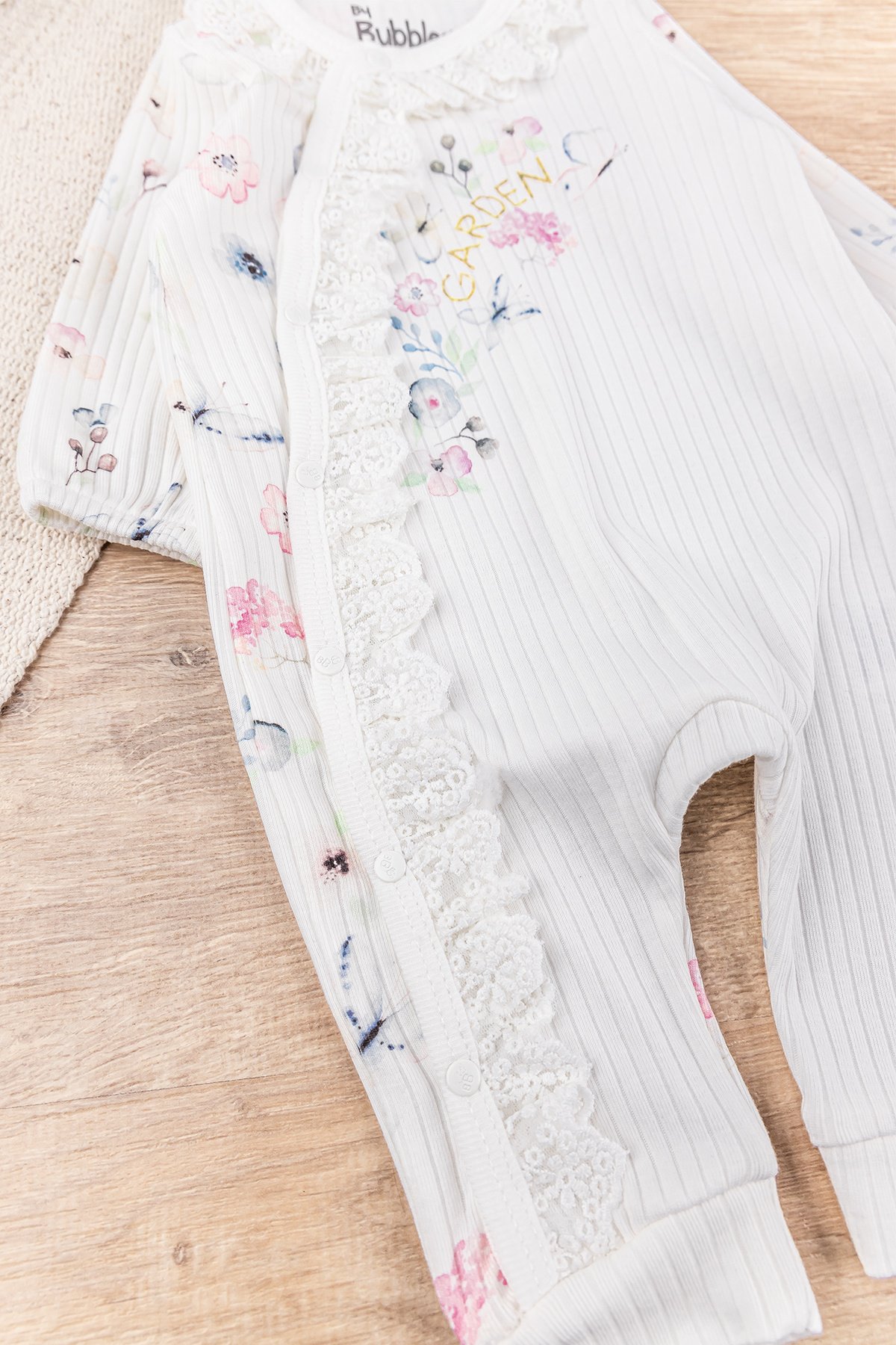 Çiçek Desenli Güpürlü Şapkalı Kız Bebek Tulum Takım