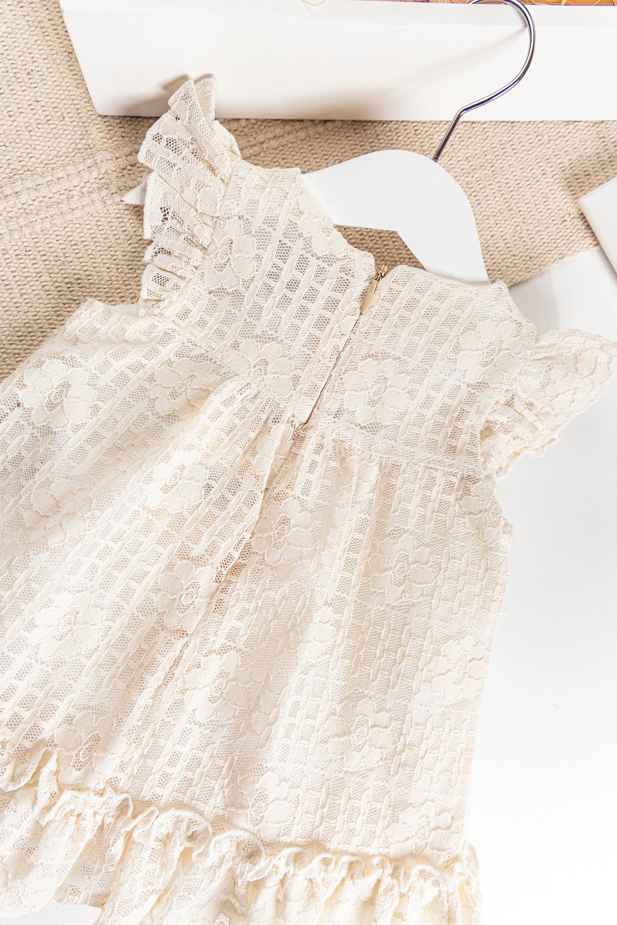 - Bebek elbisenin sırt kısmı gizli fermuarlıdır.