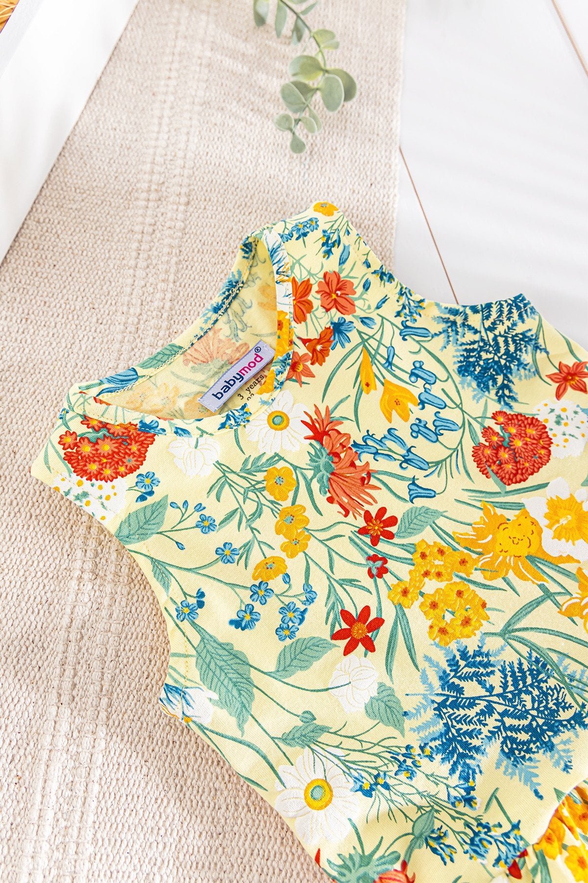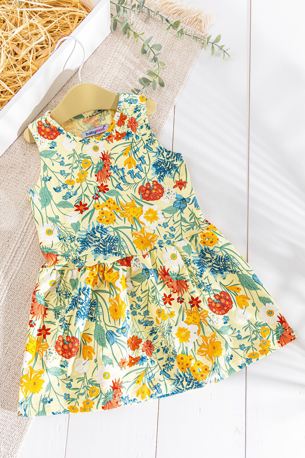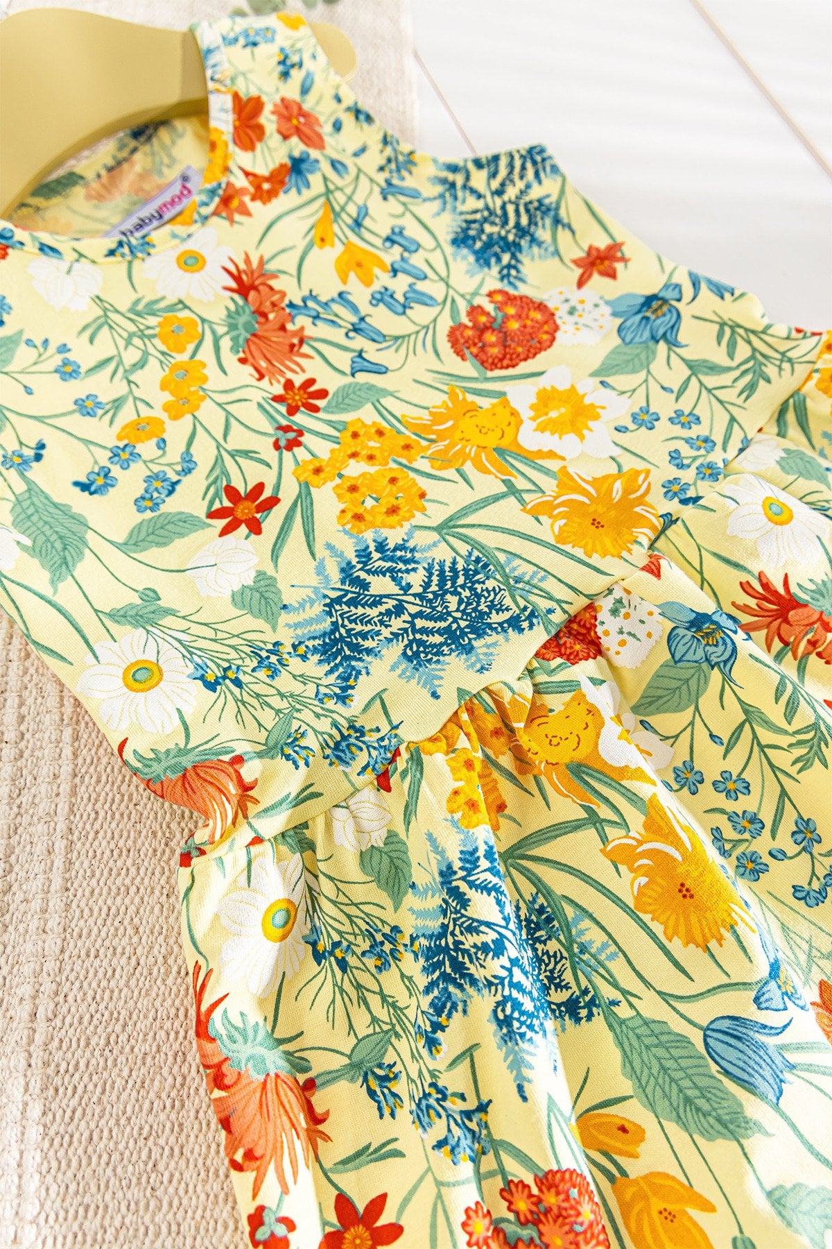 Çiçek Desenli Yazlık Kız Çocuk Elbise