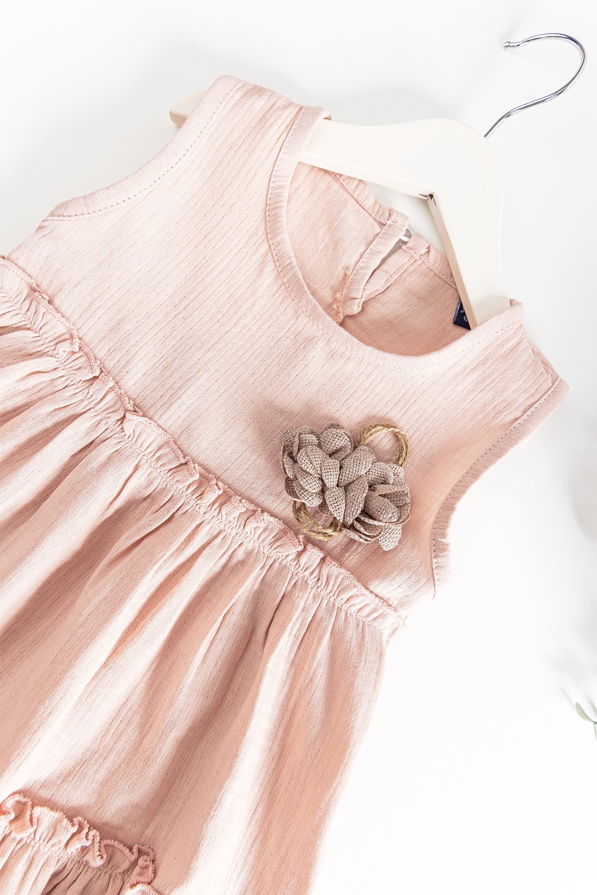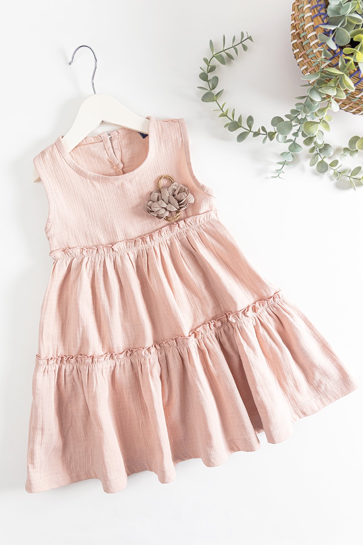 Çiçek Figürlü Fırfırlı Kız Çocuk Yazlık Elbise