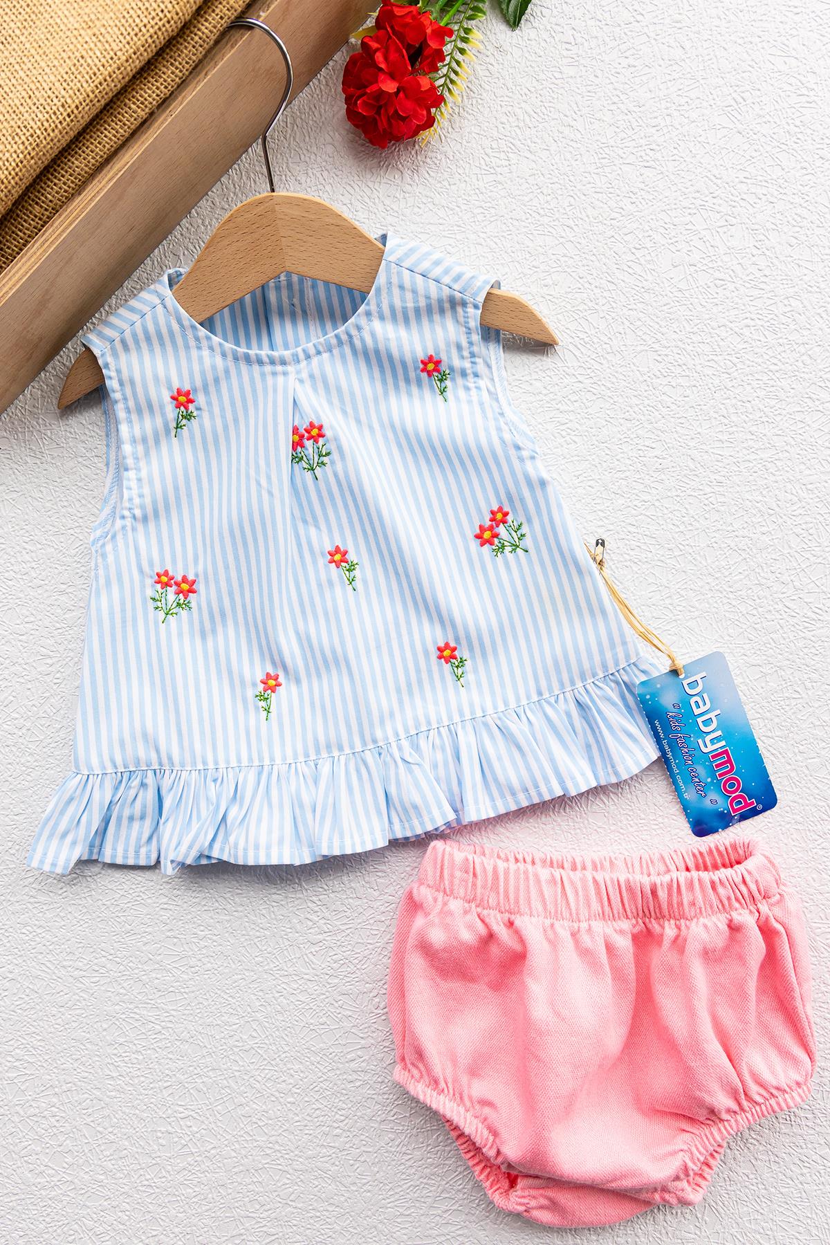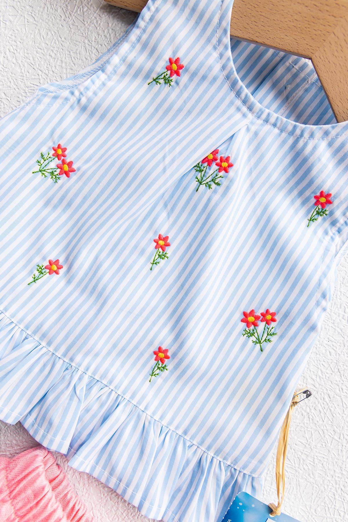 Çiçek İşlemeli İkili Kız Bebek Takım